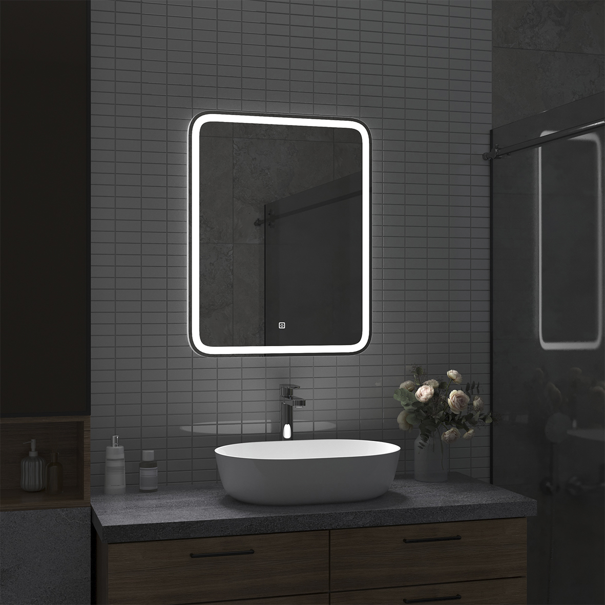 Зеркало с внутренней ЛЭД подсветкой, прямоугольное, сенсорное, с пескоструйной обработкой, изготовлено из влагостойкого зеркального полотна толщиной 4 мм. Корпус изготовлен из высокопрочного пластика АБС. Источник света скрыт за зеркальной поверхностью, световое зеркало представляет собой идеальное сочетание стеклянной поверхности и глубокой игры света. Край полотна обработан для защиты от порезов при контакте. Питание от сети 220В, сенсорный выключатель, температура свечения ЛЭД - 6000К, светодиоды - 2835 (120), 220 В / 50 Гц. Управление подсветкой осуществляется сенсорным выключателем. Срок службы диодов - 30000 часов. ЛЭД подсветка зеркала имеет нейтральный оттенок белого свечения. Изделие прошло обязательную сертификацию и может использоваться в помещениях с повышенной влажностью воздуха. В комплект поставки входит крепеж. Габаритные размеры: высота 700 мм, ширина 500 мм. Вес - кг, объём - м3.
