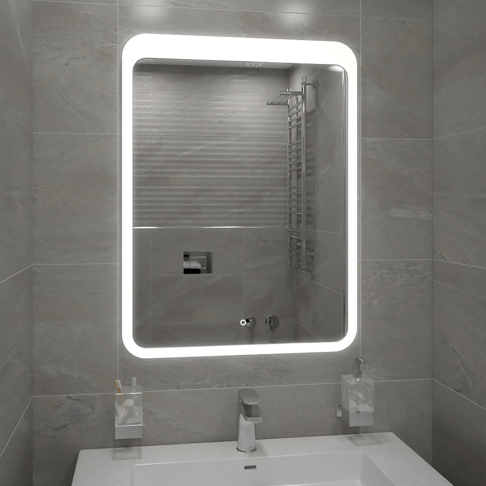 Зеркало с внутренней LED подсветкой, прямоугольное, сенсорное, с пескоструйной обработкой, изготовлено из влагостойкого зеркального полотна толщиной 4 мм производства AGC GLASS EUROPE. Корпус изготовлен из высокопрочного пластика АБС. Источник света скрыт за зеркальной поверхностью, световое зеркало представляет собой идеальное сочетание стеклянной поверхности и глубокой игры света. Край полотна обработан для защиты от порезов при контакте. Питание от сети 220В, сенсорный выключатель, температура свечения LED - 6000К, светодиоды - 2835 (120), 220 V / 50 Hz. Управление подсветкой осуществляется сенсорным выключателем. Срок службы диодов - 30000 часов. LED подсветка зеркала имеет нейтральный оттенок белого свечения. Изделие прошло обязательную сертификацию и может использоваться в помещениях с повышенной влажностью воздуха. В комплект поставки входит крепеж. Габаритные размеры: высота 800 мм, ширина 600 мм. Вес - 7,000 кг, объём - 0,02200 м3.