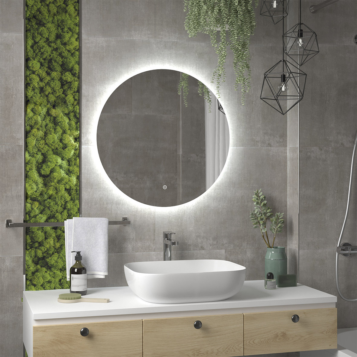Зеркало с подсветкой САНАКС Ø600 с контактным сенсором, это настенное зеркало нового поколения, изготовленное из полотна толщиной 4 мм от ведущего европейского производителя. При изготовлении используется светодиодная лента с плотностью диодов 120 шт/м и мощностью 9,6 Вт/м, обеспечивающая яркое и равномерное свечение.Это создает мягкое и равномерное свечение по периметру всего зеркала. Электрические компоненты размещены внутри корпуса, край полотна обработан еврокромкой, что обеспечивает надежную защиту от случайных порезов при контакте с изделием. Управление подсветкой осуществляется при помощи контактного сенсора. Зеркало поставляется в комплекте с настенным крепежом. Изделие прошло обязательную сертификацию и может использоваться в помещениях с повышенной влажностью воздуха. Габаритные размеры: Ø600 мм.