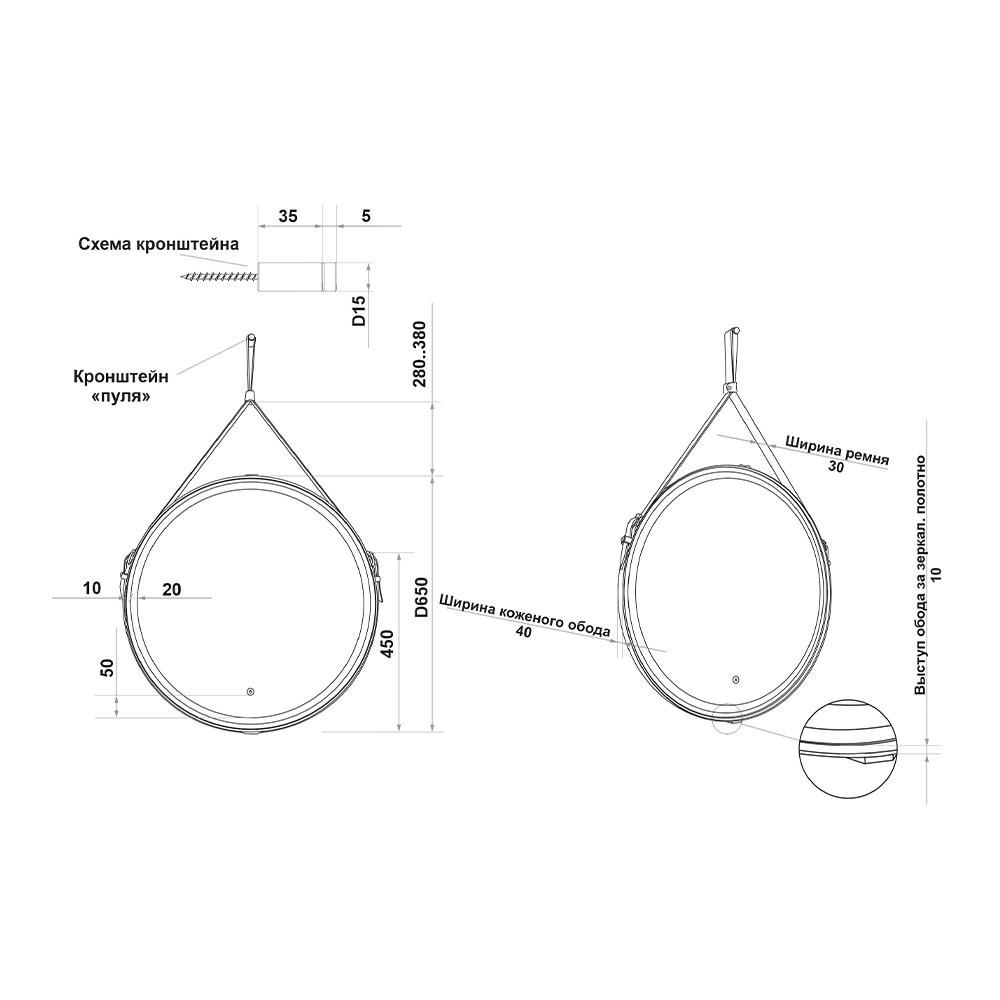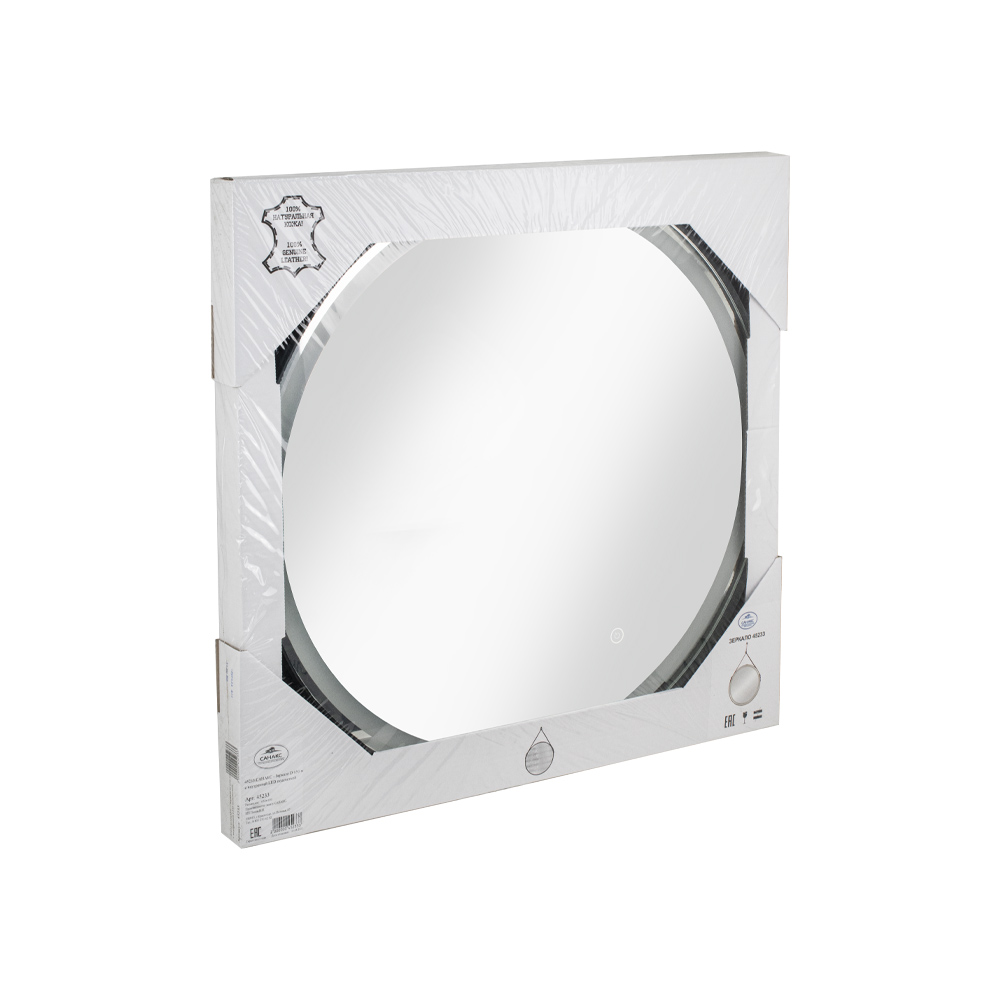 Зеркало с внутренней ЛЭД подсветкой, круглое, сенсорное, с пескоструйным орнаментом изготовлено из влагостойкого зеркального полотна толщиной 4 мм. Корпус изготовлен из высокопрочного МДФ + Ремень из натуральной кожи. Источник света скрыт за зеркальной поверхностью, световое зеркало представляет собой идеальное сочетание стеклянной поверхности и глубокой игры света. Край полотна обработан для защиты от порезов при контакте. Питание от сети 220В, сенсорный выключатель, температура свечения ЛЭД - 6000К, светодиоды - 2835 (120), 220 В / 50 Гц. Управление подсветкой осуществляется сенсорным выключателем. Срок службы диодов - 30000 часов. ЛЭД подсветка зеркала имеет нейтральный оттенок белого свечения. Изделие прошло обязательную сертификацию и может использоваться в помещениях с повышенной влажностью воздуха. В комплект поставки входит крепеж. Габаритные размеры: диаметр - 650 мм. Вес - 7,000 кг, объём - 0,02450 м3.