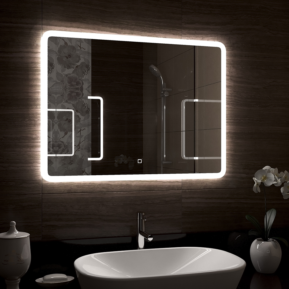 Зеркало с внутренней ЛЭД подсветкой, прямоугольное, сенсорное, с пескоструйной обработкой, изготовлено из влагостойкого зеркального полотна толщиной 4 мм. Корпус изготовлен из высокопрочного пластика АБС. Источник света скрыт за зеркальной поверхностью, световое зеркало представляет собой идеальное сочетание стеклянной поверхности и глубокой игры света. Край полотна обработан для защиты от порезов при контакте. Питание от сети 220В, сенсорный выключатель, температура свечения ЛЭД - 6000К, светодиоды - 2835 (120), 220 В / 50 Гц. Управление подсветкой осуществляется сенсорным выключателем. Срок службы диодов - 30000 часов. ЛЭД подсветка зеркала имеет нейтральный оттенок белого свечения. Изделие прошло обязательную сертификацию и может использоваться в помещениях с повышенной влажностью воздуха. В комплект поставки входит крепеж. Габаритные размеры: высота 700 мм, ширина 900 мм. Вес - 9,100 кг, объём - 0,03500 м3.