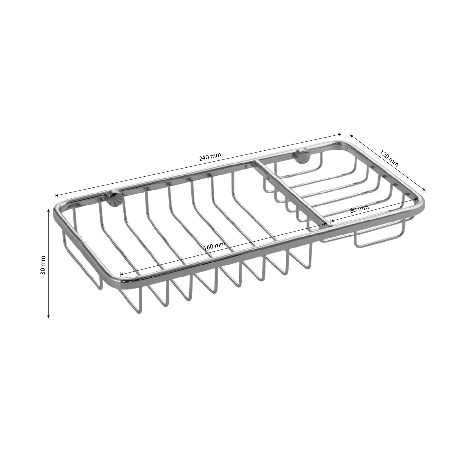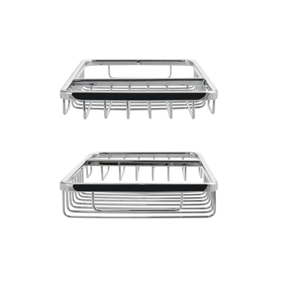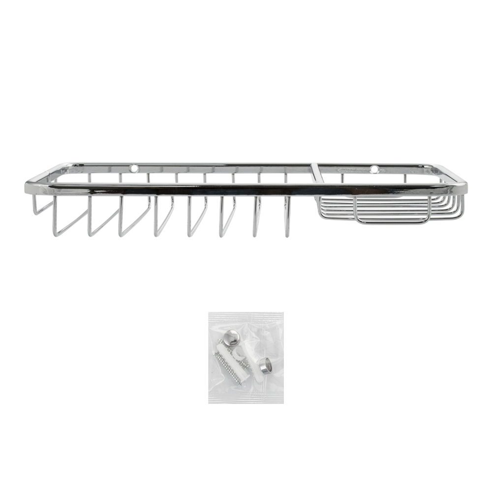 Мыльница подвесная, настенная, большая, двухсекционная, прямоугольной формы, решетка, хромированная. Материал изготовления — ЦАМ. Хромированное покрытие очень стойко переносит истирания и обеспечивает зеркальный блеск изделия. Сетчатый каркас не позволяет влаге скапливаться, поэтому мыло долгое время сохраняет свою форму. Идеально подойдет не только для ванной, но и для кухни. Изделие крепится к стене с помощью дюбелей и саморезов (входят в комплект). Габаритные размеры: ширина 240 мм, глубина 120 мм, высота 30 мм. Вес - 0,400 кг, объём - 0,00150 м3.