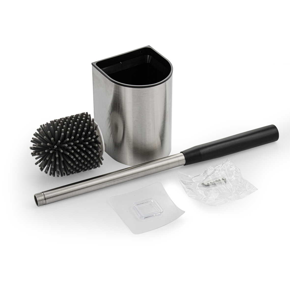 Ёршик с матовой сатиновой колбой из нержавеющей стали, настенный, с универсальным креплением ( самоклеящееся/дюбель ), необходимый аксессуар любой туалетной комнаты. Приспособление обеспечит порядок и правильное хранение гигиенических принадлежностей. Изделие выполнено из с металла с матовым покрытием. Силиконовая щетина ерша гарантирует отличный результат очистки санузлов. Такое сочетание материалов делает конструкцию прочной и долговечной. Ёршик легко крепится к стене при помощи фурнитуры входящей в комплект поставки. Имеет специальное покрытие, которое защищает изделие от влаги и придает ему стильный внешний вид. Габаритные размеры: высота 425 мм, высота колбы 117 мм, ширина 85 мм, глубина 83 мм. Вес - 0.49 кг, объём - 0.0024 м3.