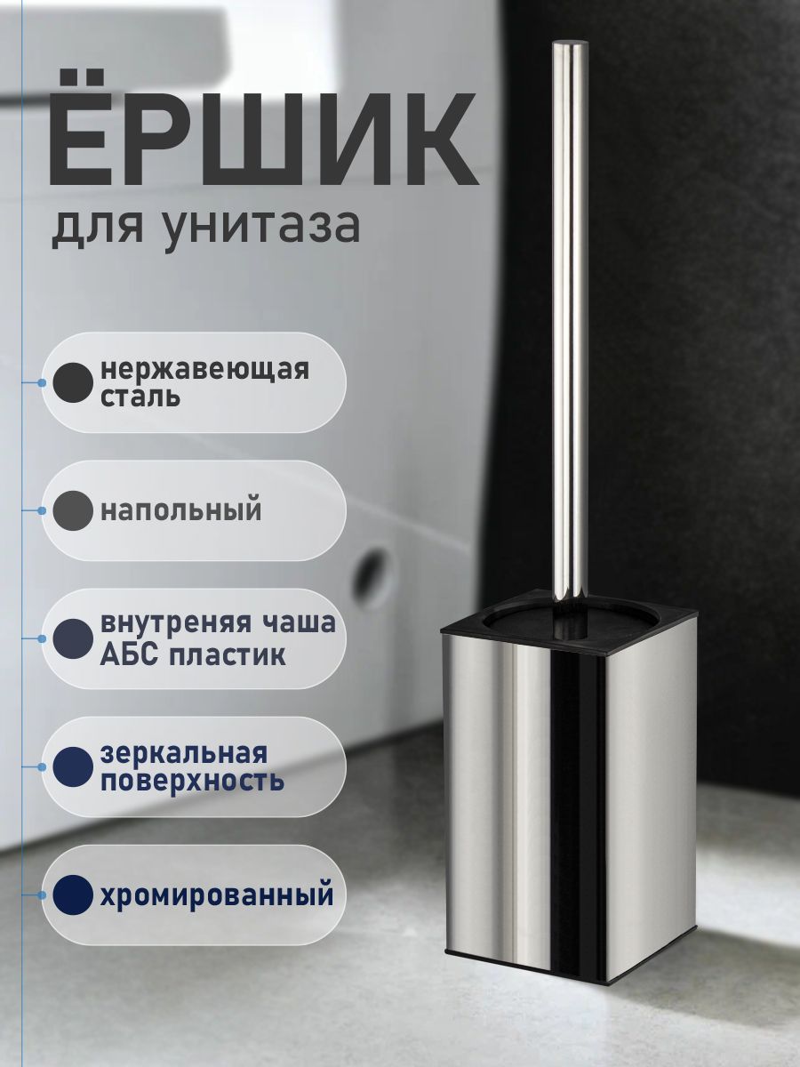 Ёршик с хромированной квадратной колбой из нержавеющей стали марки SUS 304, напольный — необходимый аксессуар любой туалетной комнаты. Приспособление обеспечит порядок и правильное хранение гигиенических принадлежностей. Изделие выполнено из с металла с хромированным покрытием. Жесткая щетина ерша гарантирует отличный результат очистки санузлов. Такое сочетание материалов делает конструкцию прочной и долговечной. Ёршик легко устанавливается на пол. Имеет специальное покрытие, которое защищает изделие от влаги и придает ему стильный внешний вид. Габаритные размеры: высота 385 мм, высота колбы 145 мм, ширина 80 мм, глубина 80 мм. Вес - 0.51 кг, объём - 0.00323 м3.