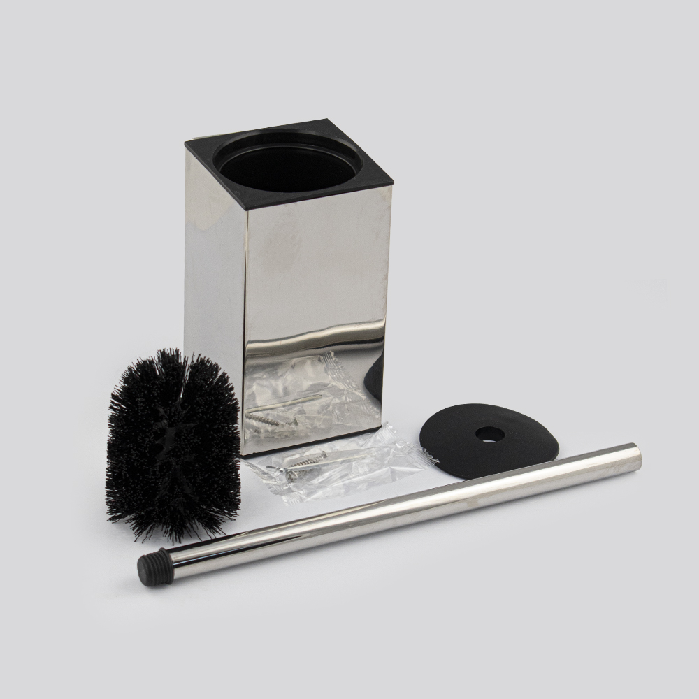 Ёршик с хромированной квадратной колбой из нержавеющей стали марки SUS 304, настенный, необходимый аксессуар любой туалетной комнаты. Приспособление обеспечит порядок и правильное хранение гигиенических принадлежностей. Изделие выполнено из с металла с хромированным покрытием. Жесткая щетина ерша гарантирует отличный результат очистки санузлов. Такое сочетание материалов делает конструкцию прочной и долговечной. Ёршик легко крепится к стене при помощи фурнитуры входящей в комплект поставки. Имеет специальное покрытие, которое защищает изделие от влаги и придает ему стильный внешний вид. Габаритные размеры: высота 385 мм, высота колбы 145 мм, ширина 80 мм, глубина 80 мм. Вес - 0.59 кг, объём - 0.00323 м3.