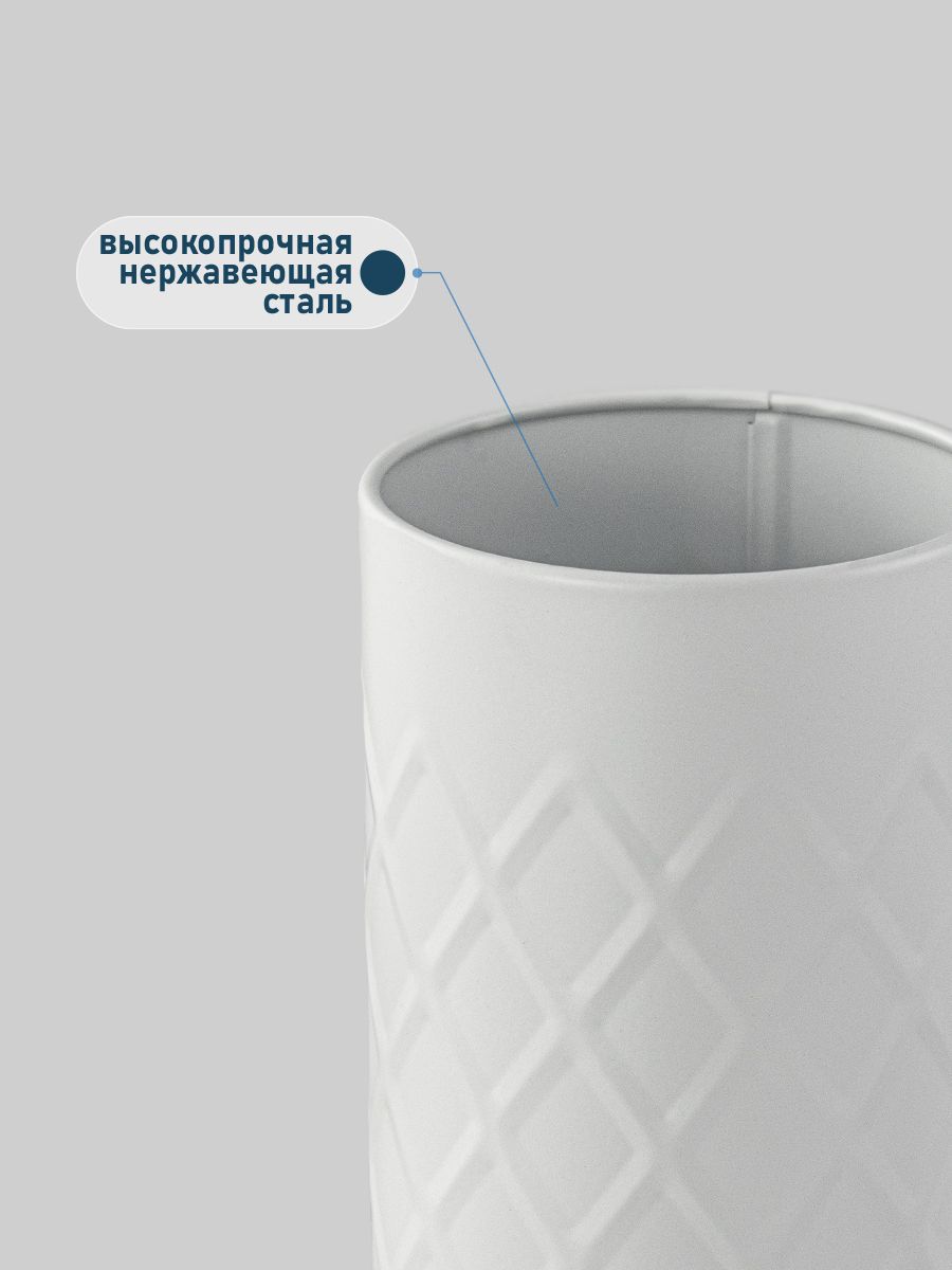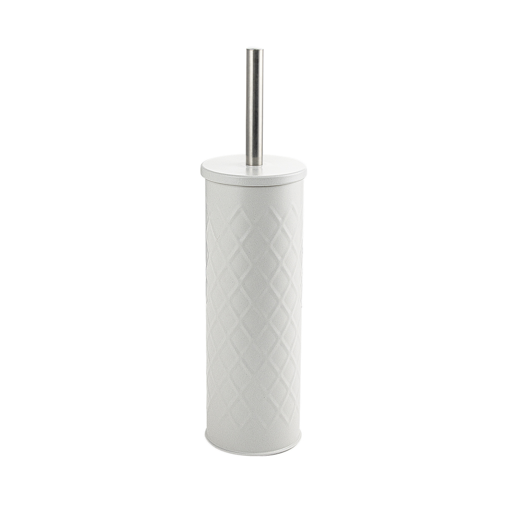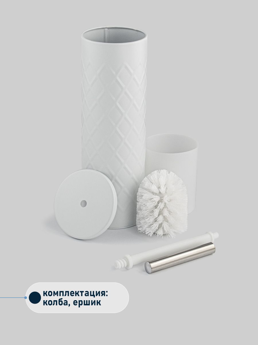 Ёршик круглый с колбой белого цвета с ромбическим узором из нержавеющей стали марки 410, напольный, необходимый аксессуар любой туалетной комнаты. Приспособление обеспечит порядок и правильное хранение гигиенических принадлежностей. Изделие выполнено из металла с эмалированным покрытием белого цвета. Жесткая щетина ерша гарантирует отличный результат очистки санузлов. Такое сочетание материалов делает конструкцию прочной и долговечной. Ёршик легко устанавливается на пол. Имеет специальное покрытие, которое защищает изделие от влаги и придает ему стильный внешний вид. Габаритные размеры: высота 385 мм, высота колбы 270 мм, диаметр 90 мм. Вес - 0,500 кг, объём - 0,00345 м3.