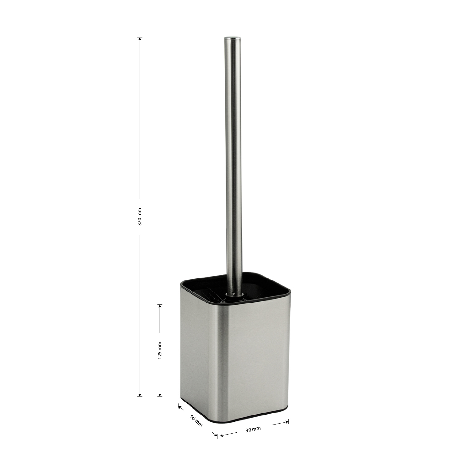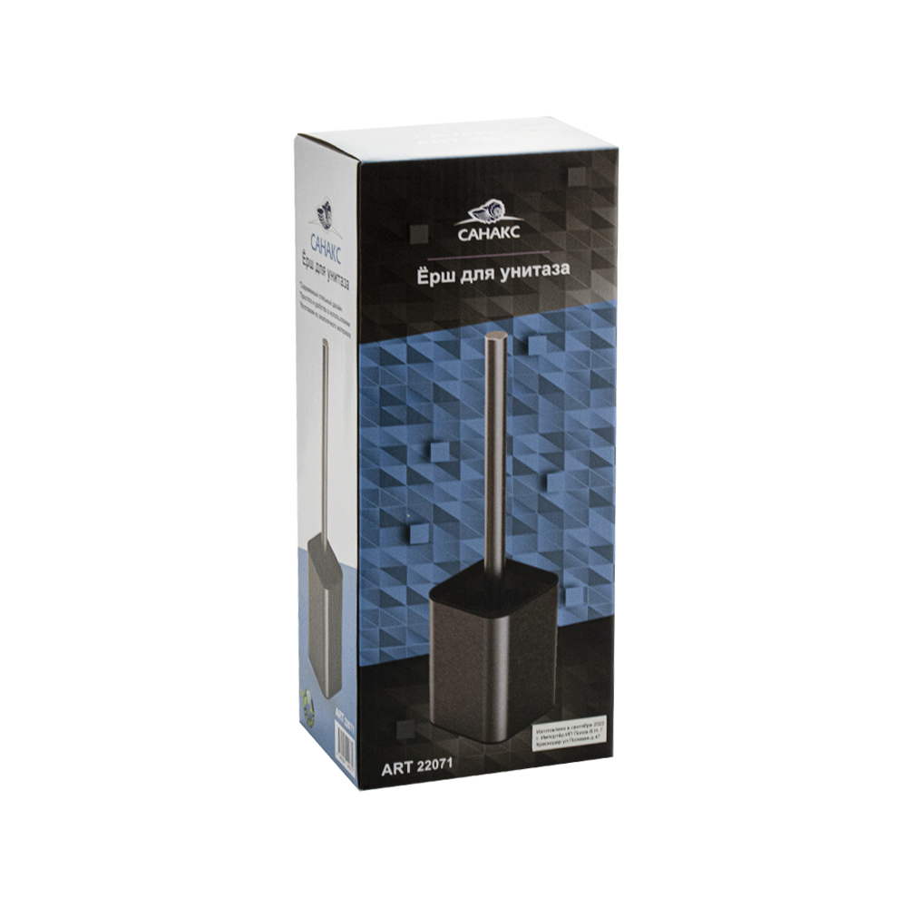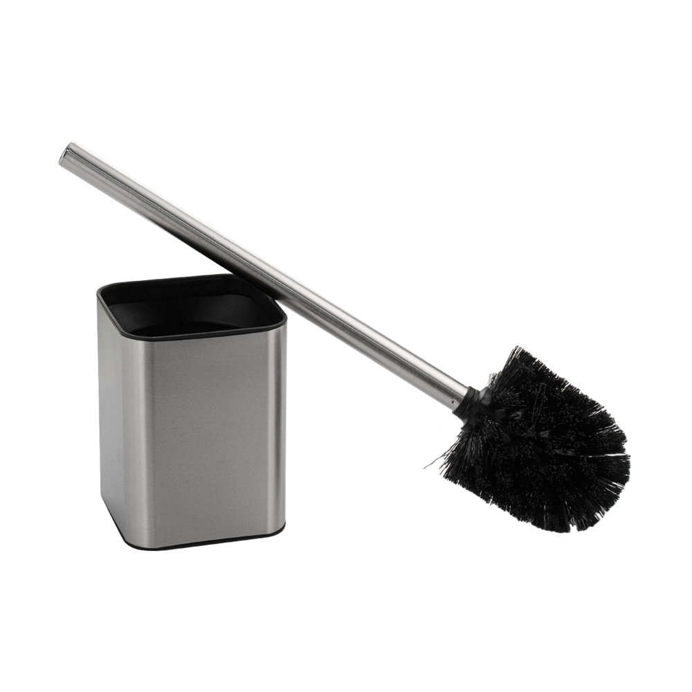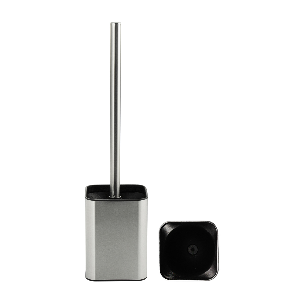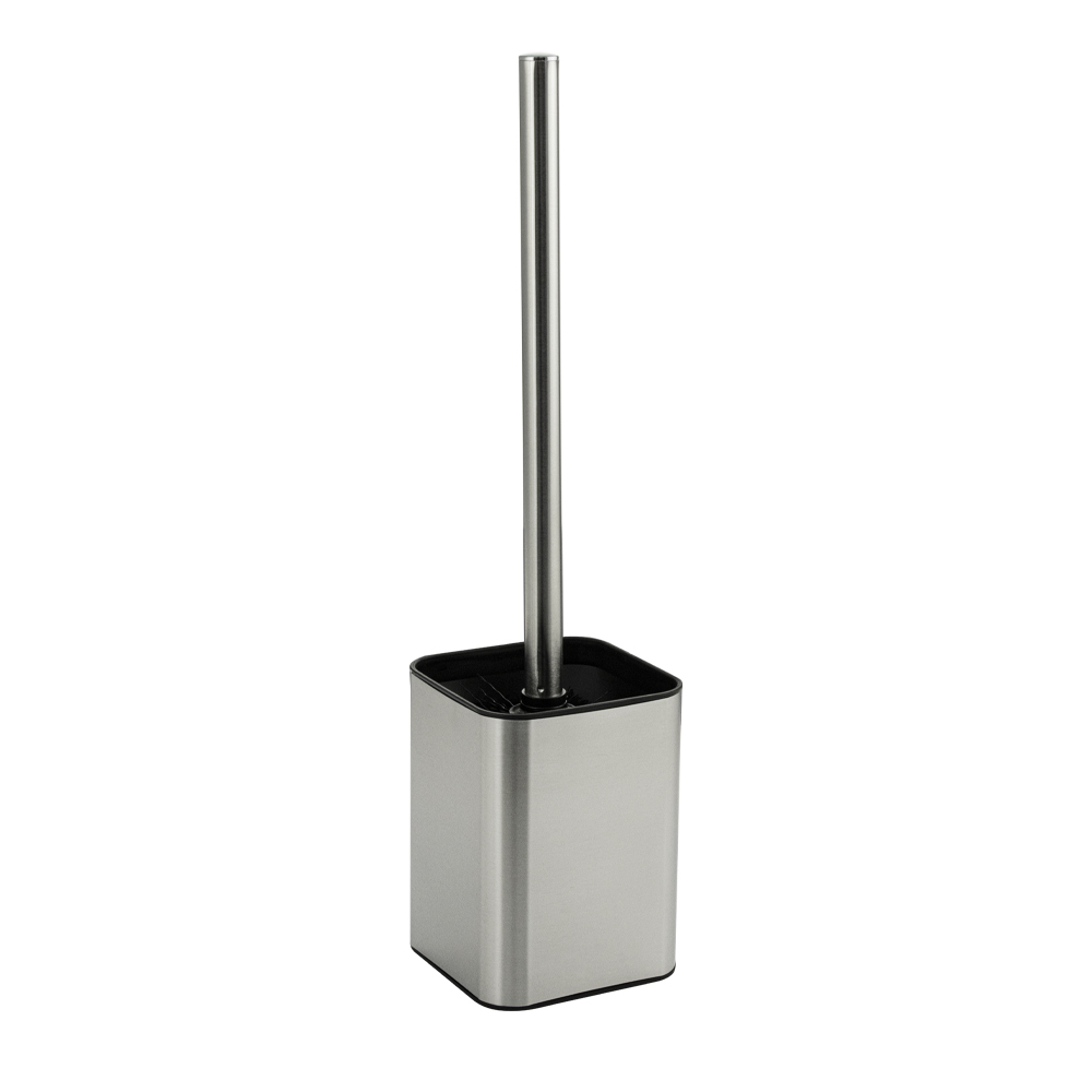 Ёрш сантехнический напольный, матовая нержавеющая сталь + чёрный пластик. Гармоничный дизайн и цвет туалетного ершика отлично впишется в любой интерьер. Напольный аксессуар включает в себя ерш для чистки с хромированной ручкой и подставку стакан для ерша. Щётка для унитаза имеет густой жесткий ворс, обладает высокой стойкостью к стиранию. Туалетный ерш выполнен из высокопрочного пластика АБС и матовой нержавеющей стали и предназначен для использования в помещениях с повышенной влажностью, он безопасен и не требует специального ухода. В коллекции представлены: дозатор для мыла, мыльница, напольный ершик для унитаза, стакан для зубных щеток. Габаритные размеры: высота 370 мм, высота колбы 125 мм, основание 90*90 мм. Вес - 0,400 кг, объём - 0,00383 м3.