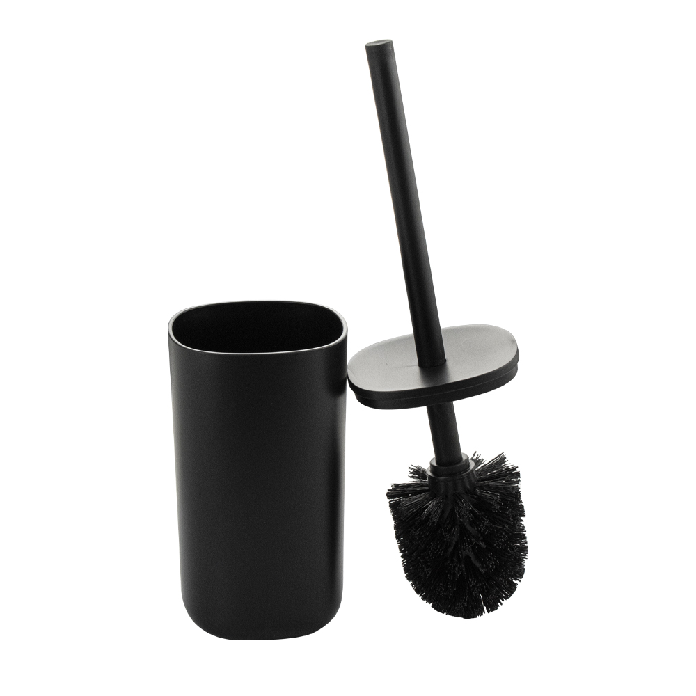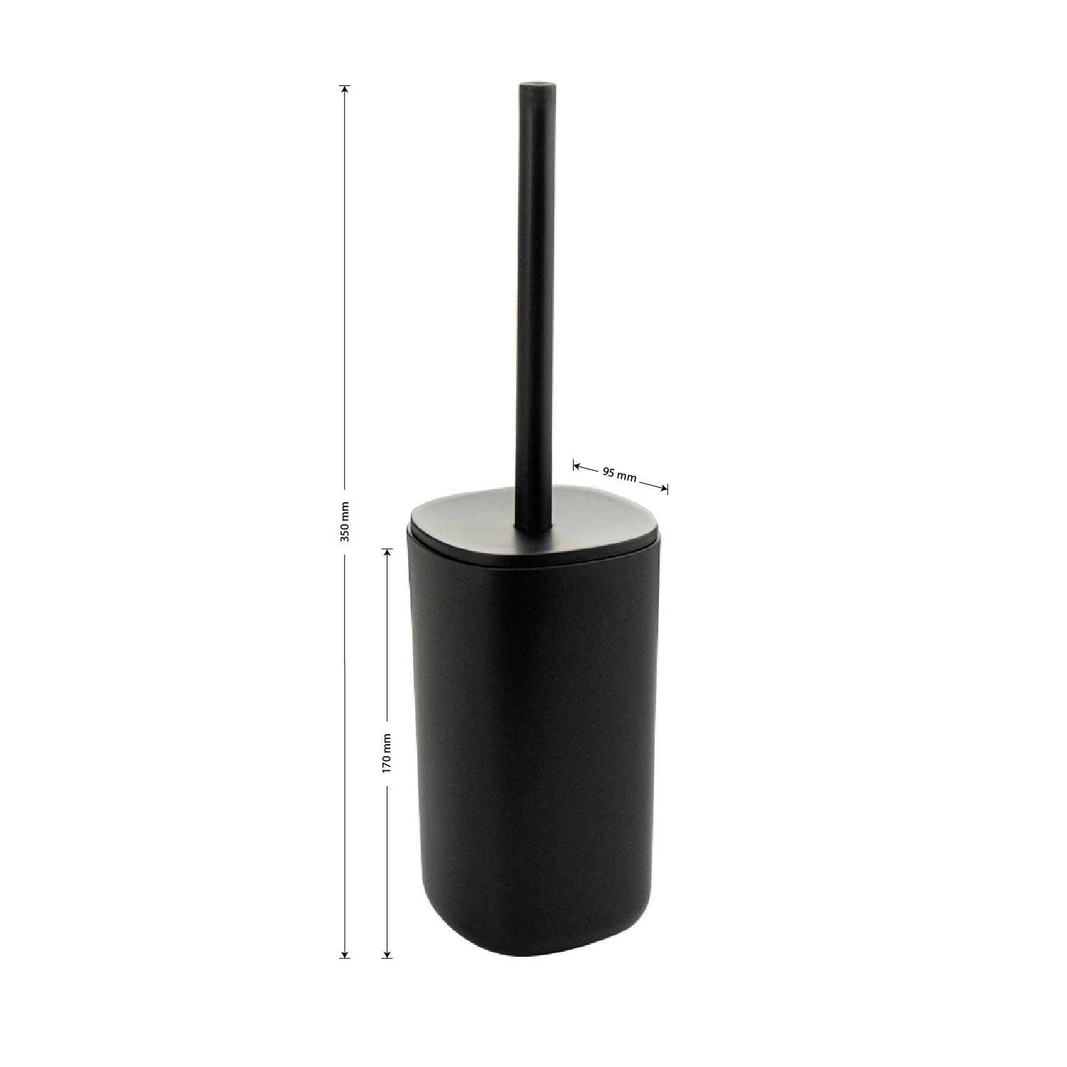 Ёрш сантехнический напольный чёрный, матовый. Гармоничный дизайн и цвет туалетного ершика отлично впишется в любой интерьер. Напольный аксессуар включает в себя ерш для чистки с ручкой и пластиковую подставку для ерша. Щётка для унитаза имеет густой жесткий ворс, обладает высокой стойкостью к стиранию. Туалетный ерш выполнен из высокопрочного пластика АБС и предназначен для использования в помещениях с повышенной влажностью, он безопасен и не требуют специального ухода. В коллекции представлены: дозатор для мыла, мыльница, напольный ершик для унитаза, стакан для зубных щеток. Габаритные размеры: высота 350 мм, высота колбы 170 мм, ширина 95 мм, глубина 95 мм. Вес - 0,321 кг, объём - 0,00432 м3