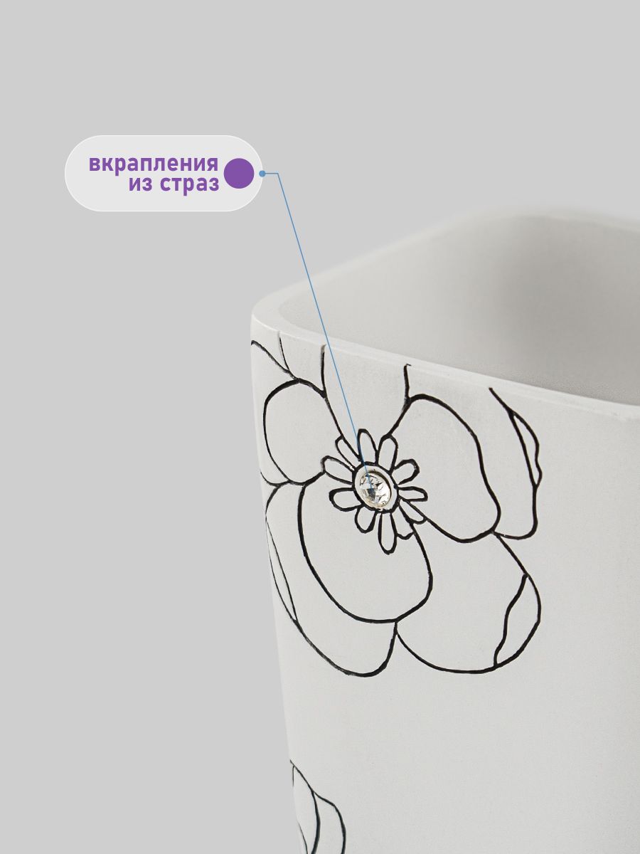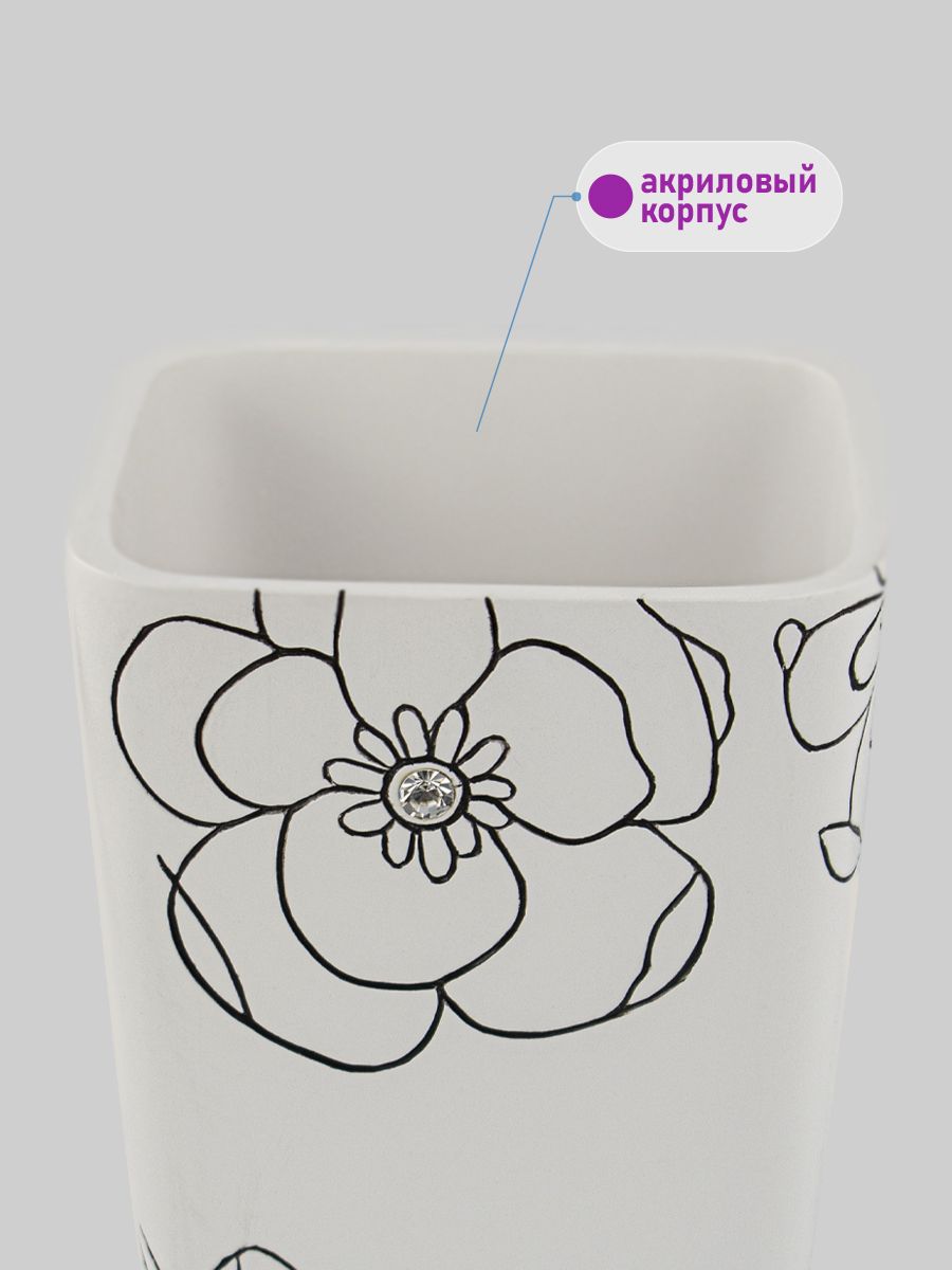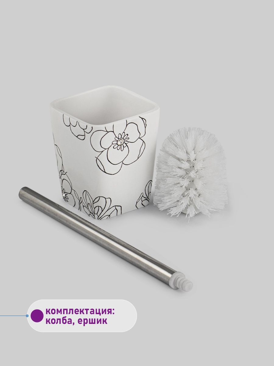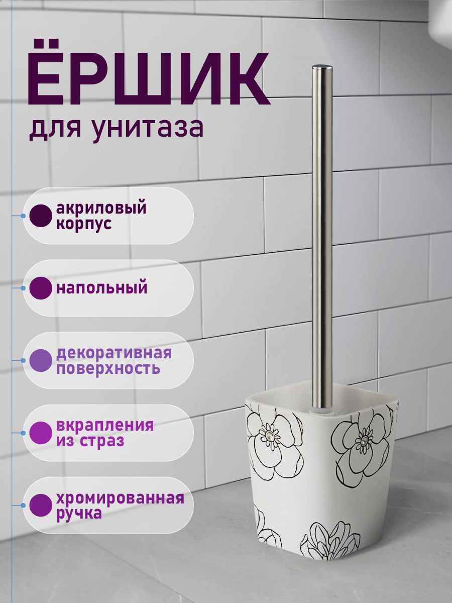 Ёрш сантехнический напольный, белый, со стразами. Гармоничный дизайн и белая расцветка туалетного ершика отлично впишется в любой интерьер. Напольный аксессуар включает в себя ерш для чистки с пластиковой хромированной ручкой и акриловую подставку для ерша. Щётка для унитаза имеет густой жесткий ворс, обладает высокой стойкостью к стиранию. Туалетный ерш выполнен из акрила и предназначен для использования в помещениях с повышенной влажностью, он безопасен и не требуют специального ухода. В коллекции представлены: дозатор для мыла, мыльница, напольный ершик для унитаза, стакан для зубных щеток. Габаритные размеры: высота 375 мм, ширина 95 мм, глубина 95 мм, высота колбы 120 мм. Вес - 0,700 кг, объём - 0,00398 м3.