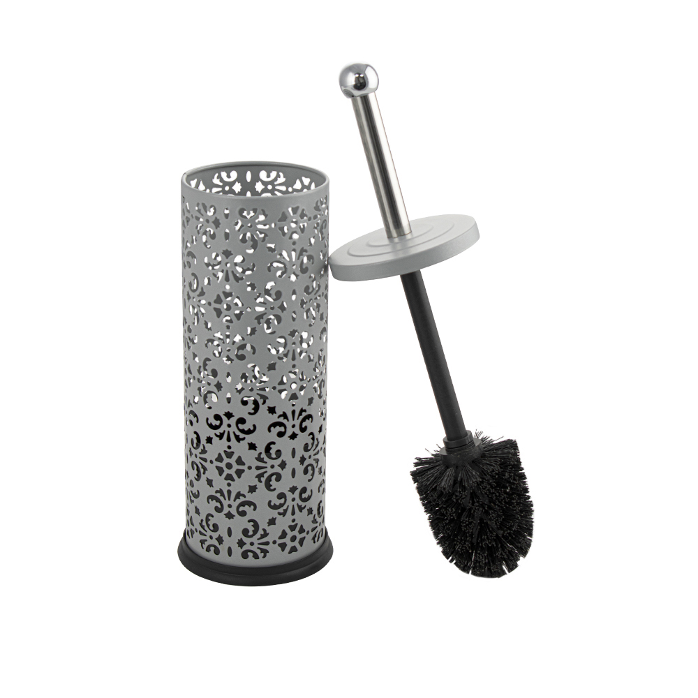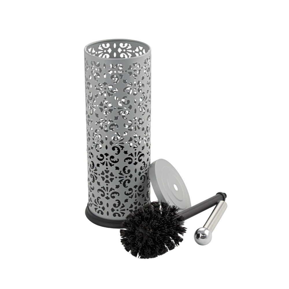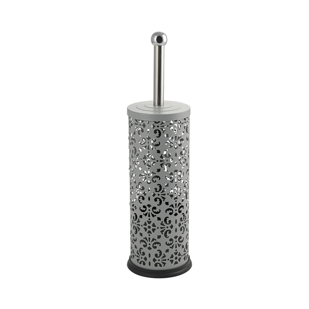 Ёрш напольный, металлический, цвет серебро, декорированный, с узором. Приспособление обеспечит порядок и правильное хранение гигиенических принадлежностей. Изделие выполнено из металла с эмалированным покрытием. Жесткая щетина ерша гарантирует отличный результат очистки санузлов. Такое сочетание материалов делает конструкцию прочной и долговечной. Ёршик легко устанавливается на пол. Имеет специальное покрытие, которое защищает изделие от влаги и придает ему стильный внешний вид. Габаритные размеры: высота 370 мм, высота колбы 250 мм, диаметр 90 мм. Вес - 0,400 кг, объём - 0,00345 м3.