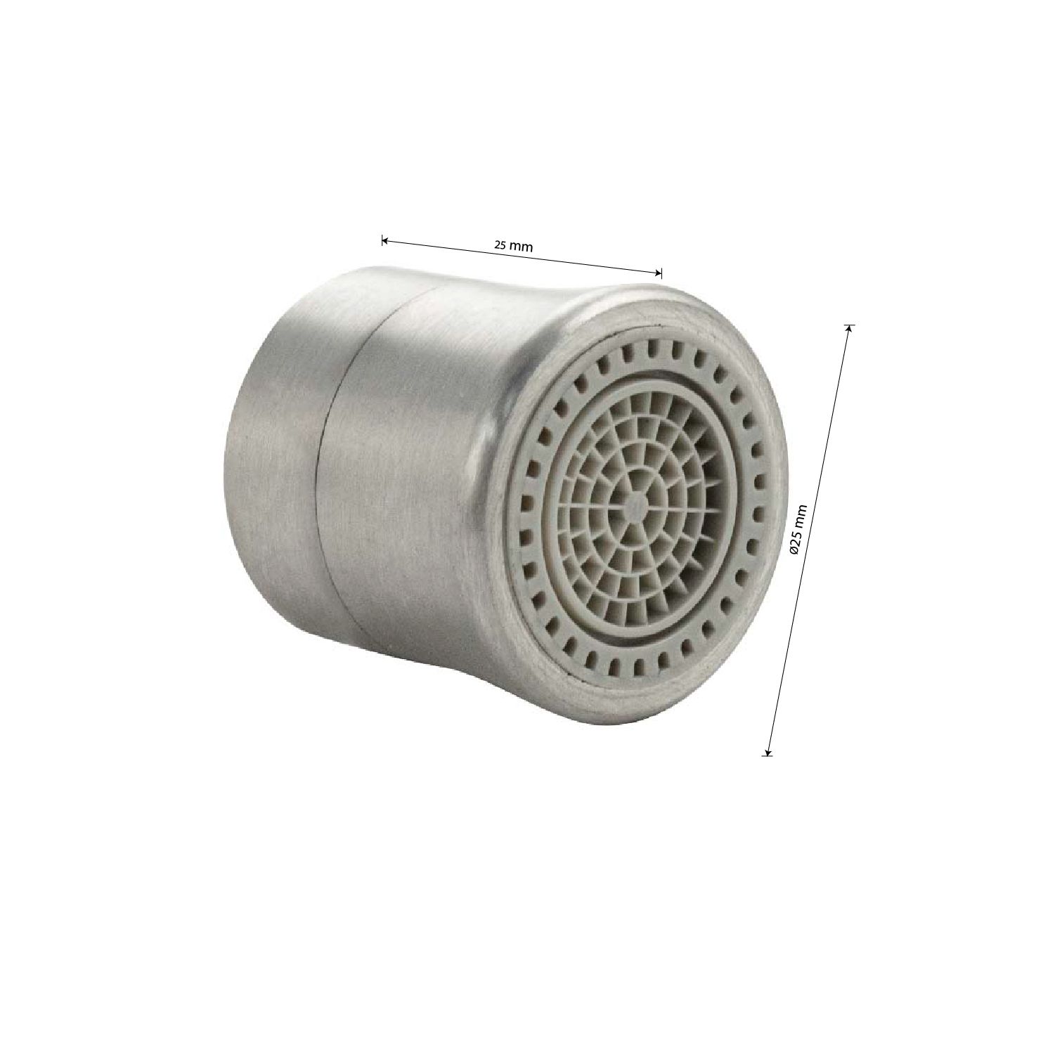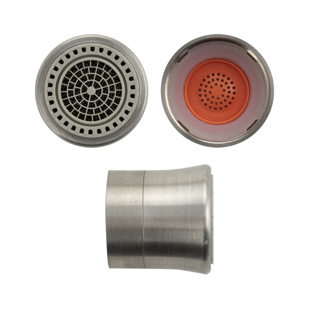 Аэратор наружный, пластик АБС, матовый хром, внутр. резьба, двухрежимный, предназначен для ограничения расхода воды. Переключение режимов подачи воды осуществляется путём поворота наконечника аэратора. Инновационная технология позволяет экономить до 50% воды при пользовании сантехническими приборами, не ухудшая их пользовательских качеств. Производительность: 5,7 л/мин при 3 бар. Габаритные размеры: длина 25 мм, диаметр 25 мм. Вес - 0,027 кг, объём - 0,00005 м3. Комплект: аэратор, уплотнения.