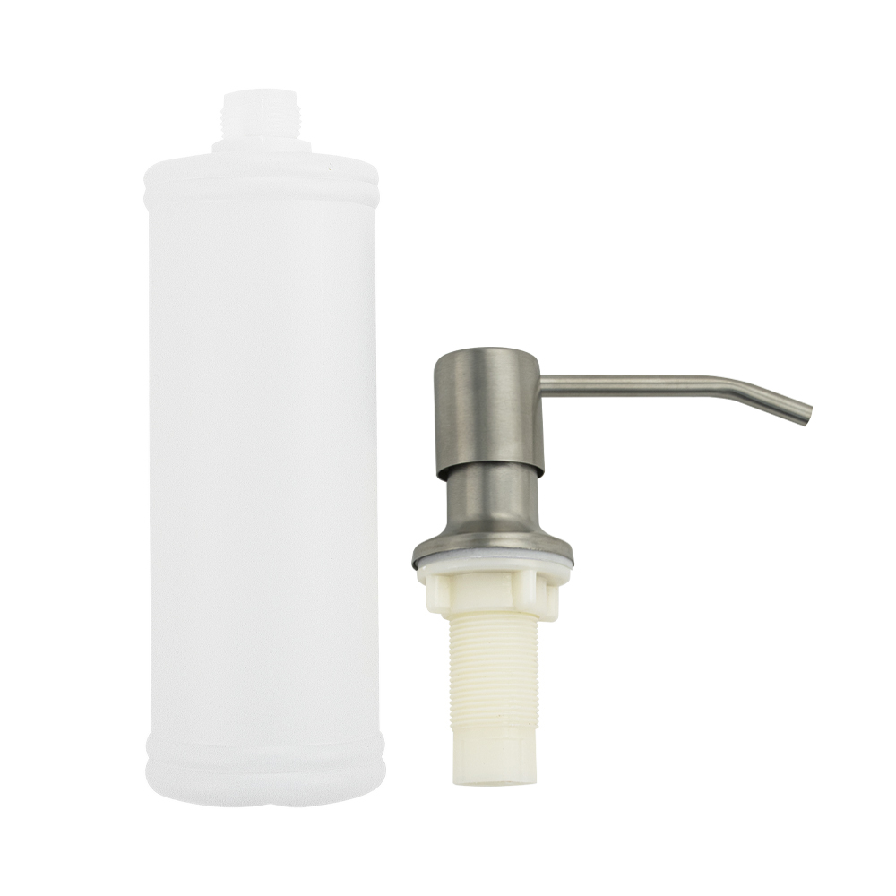 Дозатор для жидкого мыла и моющих средств, матовый хром, врезной, можно установить на кухонную мойку, если в ней предусмотрено место под встраиваемый дозатор, или на столешницу в любом удобном месте. Антивандальный корпус дозатора изготовлен из высокопрочного ABS-пластика и нержавеющей стали Требуемое отверстие для установки встраиваемого дозатора не менее 25 мм. Это очень удобный и полезный аксессуар на кухне. Наполнять его жидким моющим средством несложно, нужно просто снять верхнюю часть дозатора и залить требуемое количество жидкого мыла в колбу, емкостью 300 мл. Последовательно нажимая на верхнюю часть дозатора, Вы получаете требуемое количество моющего средства. Габаритные размеры: высота 265 мм, ширина 110 мм, диаметр посадочного седла 40 мм, длины резьбы 65 мм. Вес - 0,150 кг, объем - 0,00150 м3.