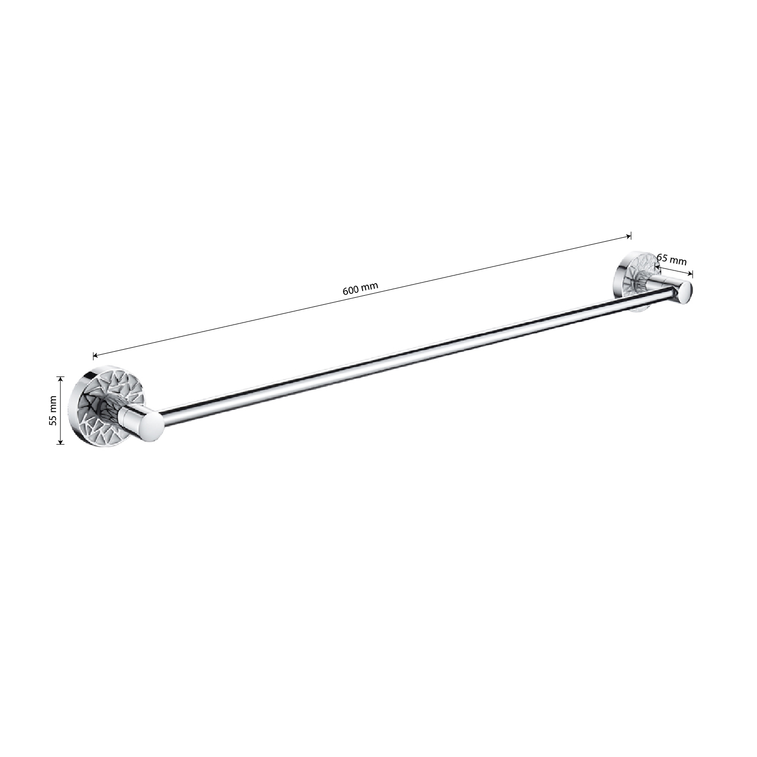 Держатель для полотенец металлический, хромированный, прямой. Материал изготовления — ЦАМ (цинк-алюминий-медь) + нержавеющая сталь. Хромированное покрытие очень стойко переносит истирания и обеспечивает зеркальный блеск изделия. На держателе с легкостью можно размещать любые полотенца для сушки. Идеально подойдет не только для ванной, но и для кухни, а также для дачи или гаража - при необходимости на держатель можно вешать любые предметы. Изделие крепится к стене с помощью дюбелей и саморезов (входят в комплект). Размеры: длина 600 мм, диаметр посадочного седла 55 мм, глубина 65 мм. Вес - 0,600 кг, объём - 0,00470 м3.