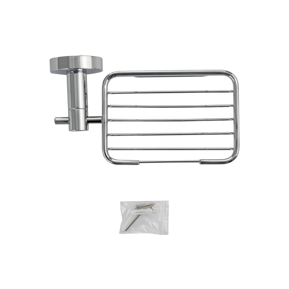 Мыльница подвесная, настенная, прямоугольной формы на основании, решетка, хромированная. Материал изготовления — ЦАМ (цинк-алюминий-медь) + нержавеющая сталь. Хромированное покрытие очень стойко переносит истирания и обеспечивает зеркальный блеск изделия. Сетчатый каркас не позволяет влаге скапливаться, поэтому мыло долгое время сохраняет свою форму. Идеально подойдет не только для ванной, но и для кухни. Изделие крепится к стене с помощью дюбелей и саморезов (входят в комплект). Габаритные размеры: ширина 175 мм, высота 50 мм, глубина 100 мм, диаметр посадочного седла 50 мм. Вес - 0,36 кг, объём - 0.00193 м3.