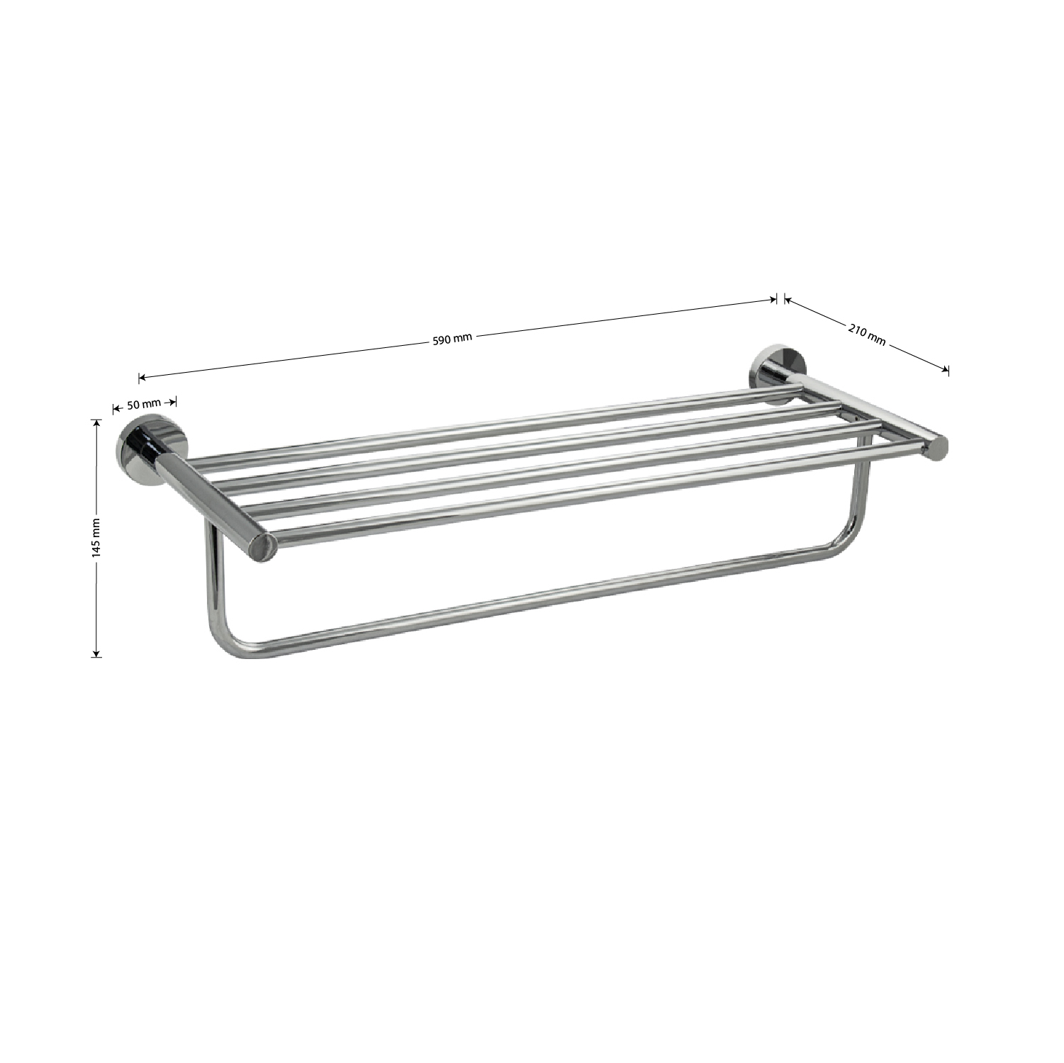 Полка для полотенца с опорой, большая, для ванной, привлекает своим современным дизайном, многофункциональностью и надежностью конструкции. Кухня, ванная, прихожая, кладовая или гардеробная - эта полка идеально подойдет везде. Металлическая полка оснащена дополнительной перекладиной. Хромированное покрытие делает её устойчивой к влаге и исключает появление ржавчины. Полка для ванной функциональное и практичное решение для любого интерьера.. Хромированное покрытие очень стойко переносит истирания и обеспечивает зеркальный блеск изделия. Идеально подойдет не только для ванной, но и для кухни. Изделие крепится к стене с помощью дюбелей и саморезов (входят в комплект). Габаритные размеры: длина 590 мм, глубина 210 мм, высота 145 мм. Вес - 1.09 кг, объём - 0.00900 м3.