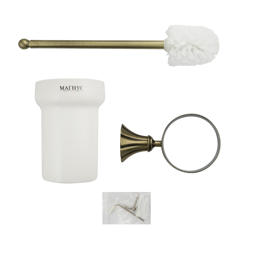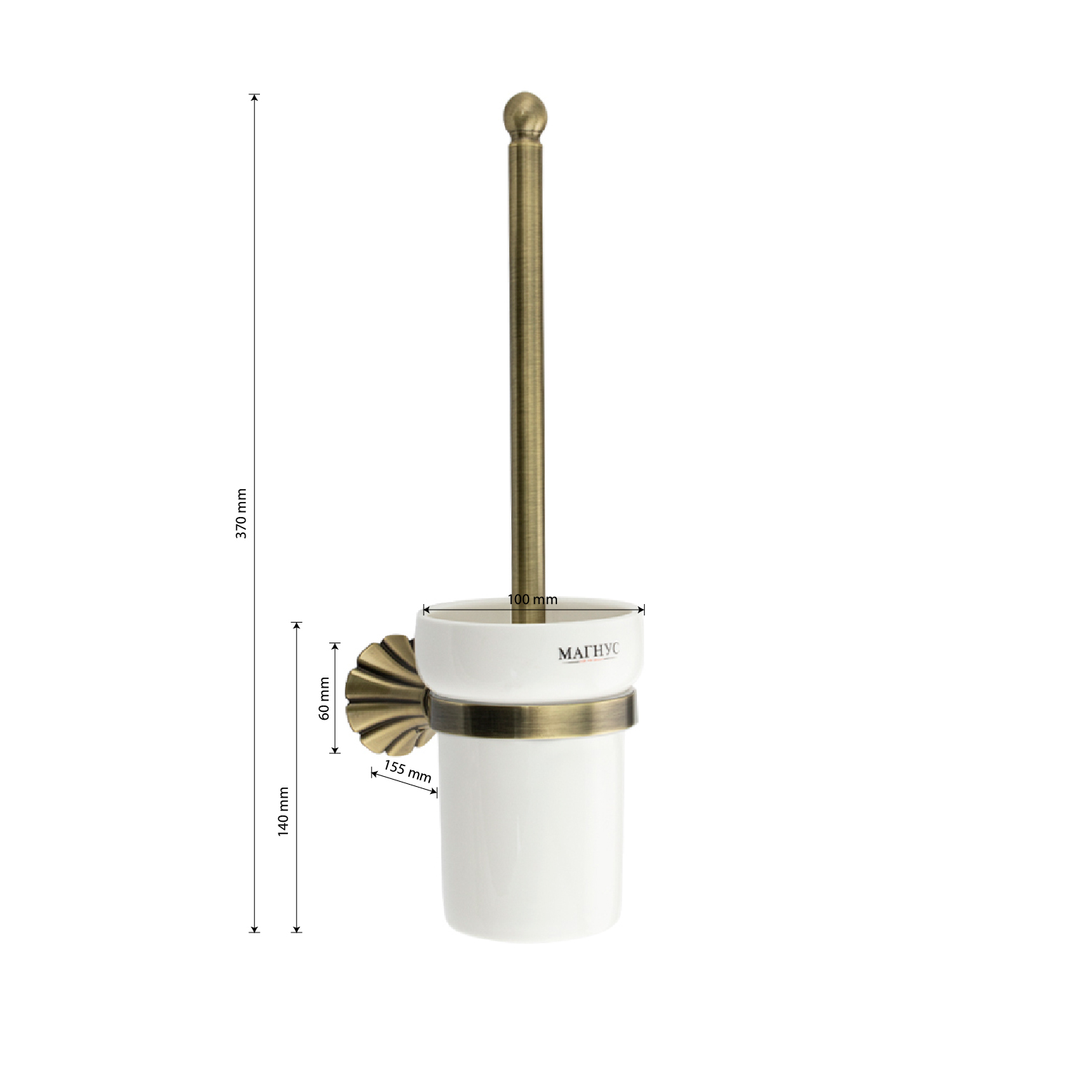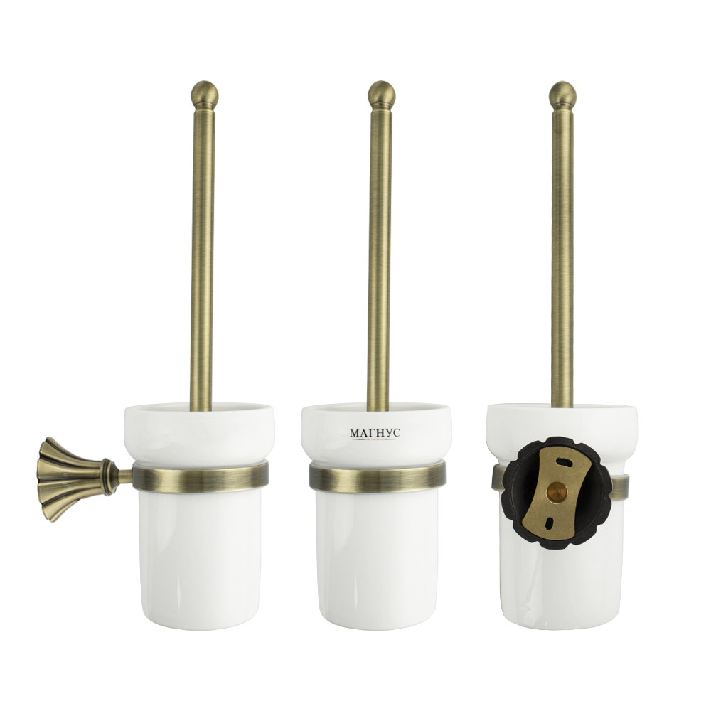 Ёршик с керамической белой колбой, настенный, необходимый аксессуар любой туалетной комнаты. Приспособление обеспечит порядок и правильное хранение гигиенических принадлежностей. Изделие выполнено из белой керамики и латуни с бронзовым матовым покрытием. Жесткая щетина ерша гарантирует отличный результат очистки санузлов. Такое сочетание материалов делает конструкцию прочной и долговечной. Держатель колбы легко и удобно крепится к стене при помощи фурнитуры входящей в комплект поставки. Материал изготовления — нержавеющая сталь. Имеет специальное бронзовое, матовое покрытие, которое защищает изделие от влаги и придает ему безупречный стильный вид и долговечность. Габаритные размеры: ширина 100 мм, высота 370 мм, высота колбы 140 мм, глубина 155 мм, основание 60 мм. Вес - 1,000 кг, объём - 0,00659 м3