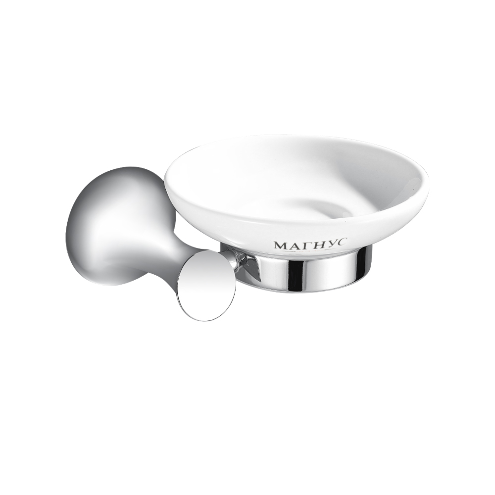 Мыльница подвесная, керамическая, с креплением к стене, круглой формы, на основании, хромированная. Изделие выполнено из белой керамики и металла с хромированным покрытием. Материал изготовления — ЦАМ (цинк-алюминий-медь) + нержавеющая сталь. Хромированное покрытие очень стойко переносит истирания и обеспечивает зеркальный блеск изделия. Идеально подойдет не только для ванной, но и для кухни. Изделие крепится к стене с помощью дюбелей и саморезов (входят в комплект). Размеры: ширина 140 мм, глубина 120 мм, высота 55 мм, диаметр чашки 110 мм, основание 55 мм. Вес - 0,600 кг, объём - 0,00180 м3.