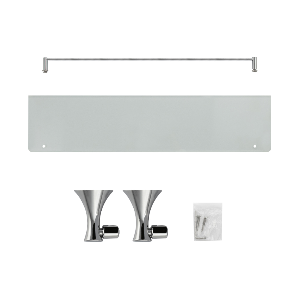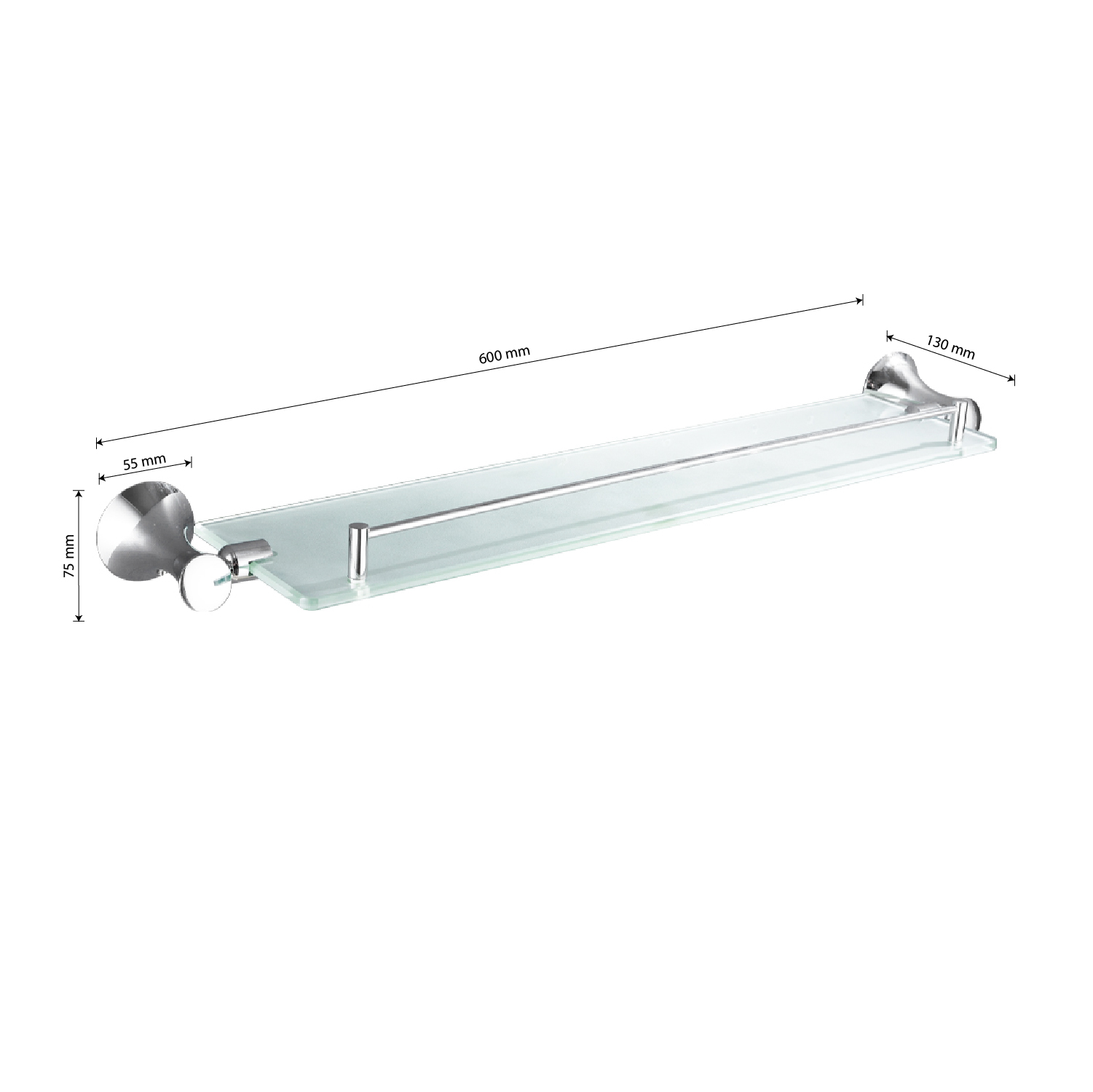 Прямоугольная полка из матового стекла с полированными краями о которые невозможно порезаться, с надежной фиксацией к стене, с помощью крепления из металла с хромированным покрытием, идеально подходит для хранения различных ванных принадлежностей. Полочка изготовлена из качественного матового стекла и имеет бортик, предотвращающий падение ванных принадлежностей. Полка для ванной функциональное и практичное решение для любого интерьера. Хромированное покрытие креплений очень стойко переносит истирания и обеспечивает зеркальный блеск изделия. Идеально подойдет не только для ванной, но и для кухни. Изделие крепится к стене с помощью дюбелей и саморезов (входят в комплект). Габаритные размеры: длина 600 мм, глубина 130 мм, высота 75 мм, основание 55 мм. Вес - 2,000 кг, объём - 0,00510 м3.