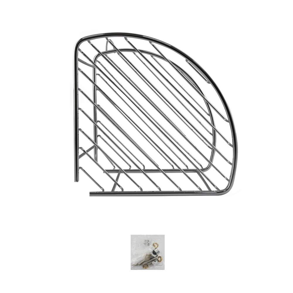 Полочка угловая овальная двухэтажная для принадлежностей, решётка обладает высокими эксплуатационными характеристиками и подходит для использования дома, в общественных местах: отелях, ресторанах и пр. Изготовлена из прочной нержавеющей стали с хромоникелевым покрытием, которое придает безупречный глянцевый блеск и долговечность. Металлическая полка оснащена крючком. Аксессуар не занимает много места, надежно фиксируется к стене при помощи набора креплений (входят в комплект) и служит удобным местом для хранения бытовых и косметических средств. Габаритные размеры: высота 350 мм, ширина 280 мм, длина стороны 220 мм, расстояние между полками 230 мм. Вес - 1,500 кг, объём - 0,02220 м3.