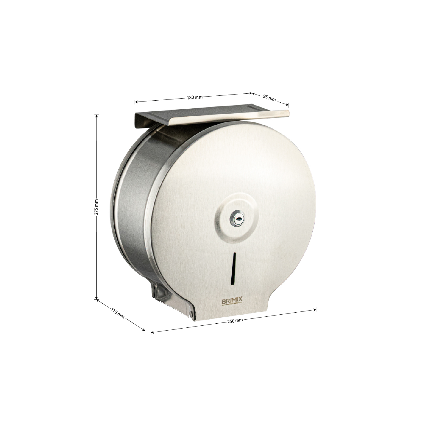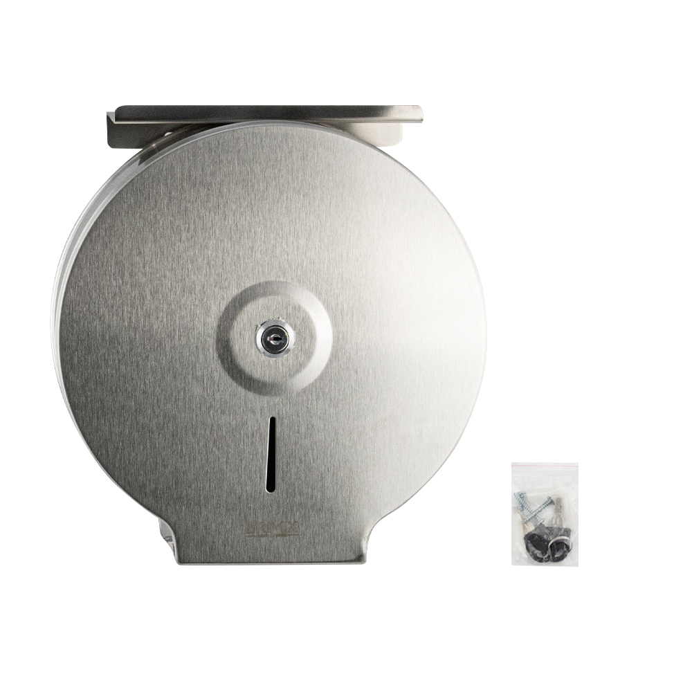 Диспенсер для туалетной бумаги - барабан, премиум, с полочкой и ключем. Антивандальный корпус диспенсера изготовлен из нержавеющей стали. Предназначен для подачи профессиональной туалетной бумаги в рулонах с намоткой до 200 м. Обеспечивает высокий уровень гигиены и комфортную подачу туалетной бумаги. Имеется окошко для контроля остатка расходных материалов и зубцы для удобного отрывания бумаги. Сочетается с расходными материалами других производителей. Оборудован самозахлопывающимся замком с ключом. В комплект входят крепежные материалы для установки. Преимущества диспенсера для туалетной бумаги - гигиеничность. Расходные материалы находятся внутри корпуса, их не касаются руки пользователей, на них не попадает грязь и капли воды. Стильный и элегантный корпус диспенсера прекрасно впишется в интерьер любого помещения. Легкость и простота в эксплуатации. Габаритные размеры: высота 275 мм, ширина барабана 250 мм, глубина барабана 115 мм, ширина полки 180 мм, глубина полки 95 мм. Диаметр внешней втулки 60 мм, диа