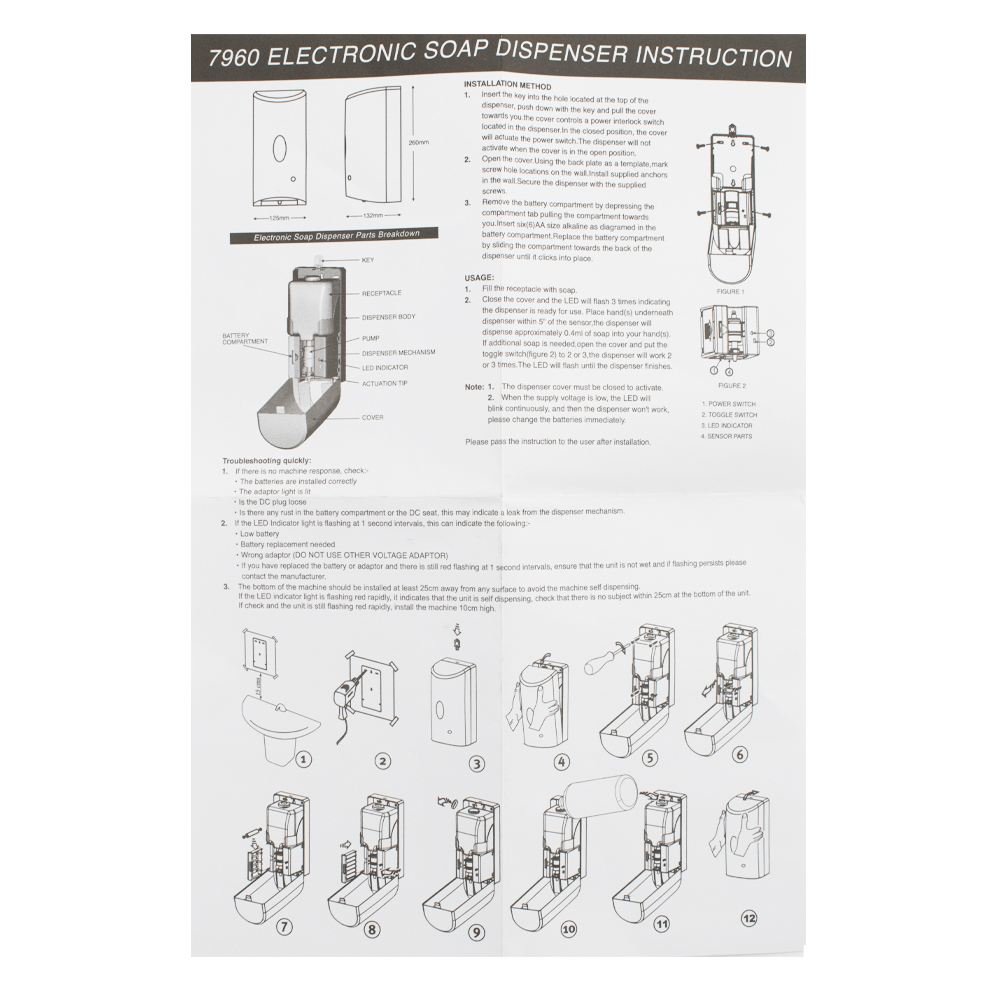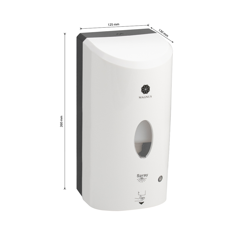 Настенный, автоматический сенсорный дозатор, предназначен для бесконтактной обработки рук антисептиком, предназначен для установки в любых санитарно-гигиенических комнатах. Имеет ключ и пластиковый замок. Дозатор прост в эксплуатации, достаточно поднести ладонь к сенсору для получения порции средства. Автоматическая подача – предотвращает распространение микробов, вызванных прикосновением. Для удобства контроля за уровнем средства на лицевой поверхности есть смотровое окно. Корпус диспенсера изготовлен из прочного пластика АБС белого цвета, который выдерживает различные механические воздействия. В резервуар емкостью 1200 мл можно заливать как антисептик, так и прочие средства. Разместив диспенсер на стене, достаточно время от времени проверять заполненность резервуара. Это отличное решение как для частных владений, так и для гостиниц, кафе, столовых и прочих общественных мест. Питание от батареек 6АА или от сети 100-240 / 9V. (в комплект не входят). Габаритные размеры: высота 260 мм, ширина 125 мм, глубина 1