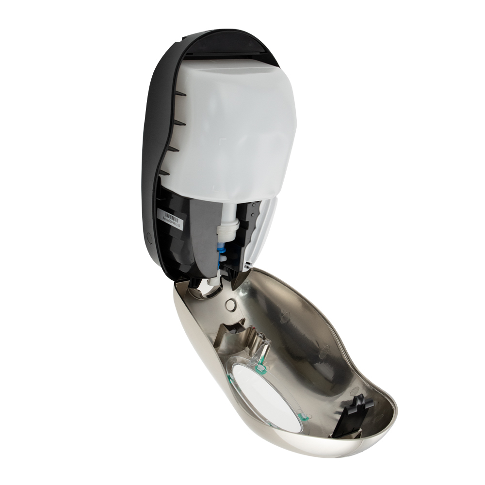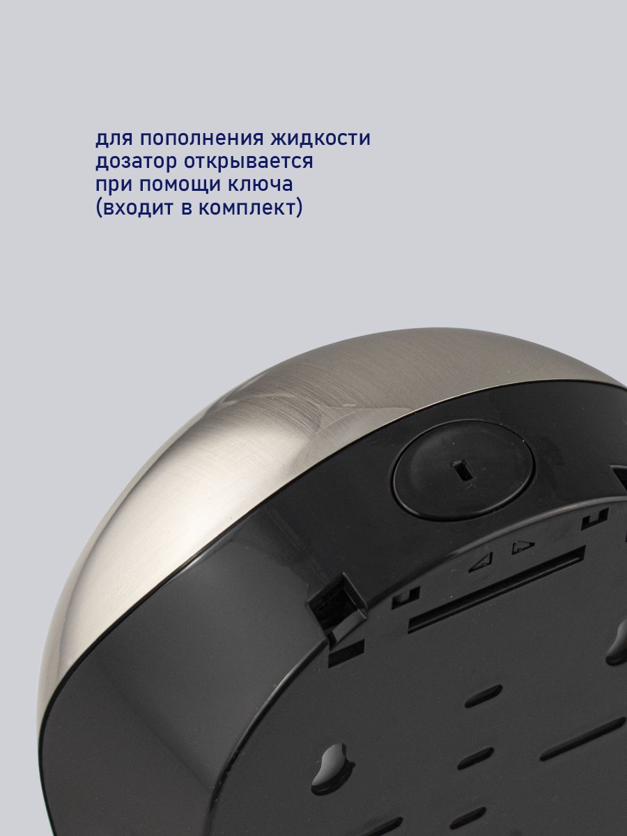 Настенный, автоматический сенсорный дозатор, с датчиком объёма жидкости и уровня заряда батарей, предназначен для бесконтактной обработки рук мылом , предназначен для установки в любых санитарно-гигиенических комнатах. Имеет ключ и пластиковый замок. Дозатор прост в эксплуатации, достаточно поднести ладонь к сенсору для получения порции средства. Автоматическая подача – предотвращает распространение микробов, вызванных прикосновением. Для удобства контроля за уровнем средства на лицевой поверхности есть смотровое окно. Корпус диспенсера изготовлен из прочного пластика АБС хромированного цвета, который выдерживает различные механические воздействия. В резервуар емкостью 1000 мл можно заливать как антисептик, так и прочие средства. Разместив диспенсер на стене, достаточно время от времени проверять заполненность резервуара. Это отличное решение как для частных владений, так и для гостиниц, кафе, столовых и прочих общественных мест. Питание от 4-х батареек АА (в комплект не входят). Габаритные размеры: высота 2