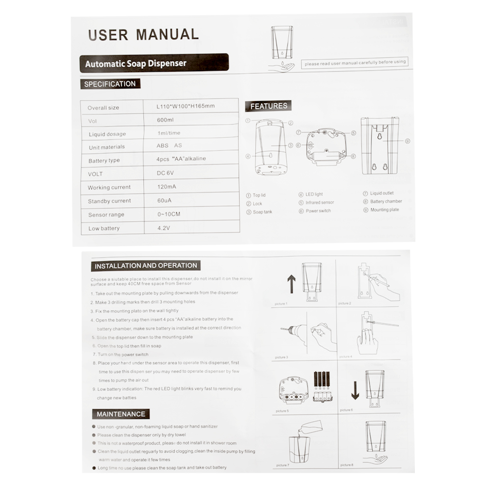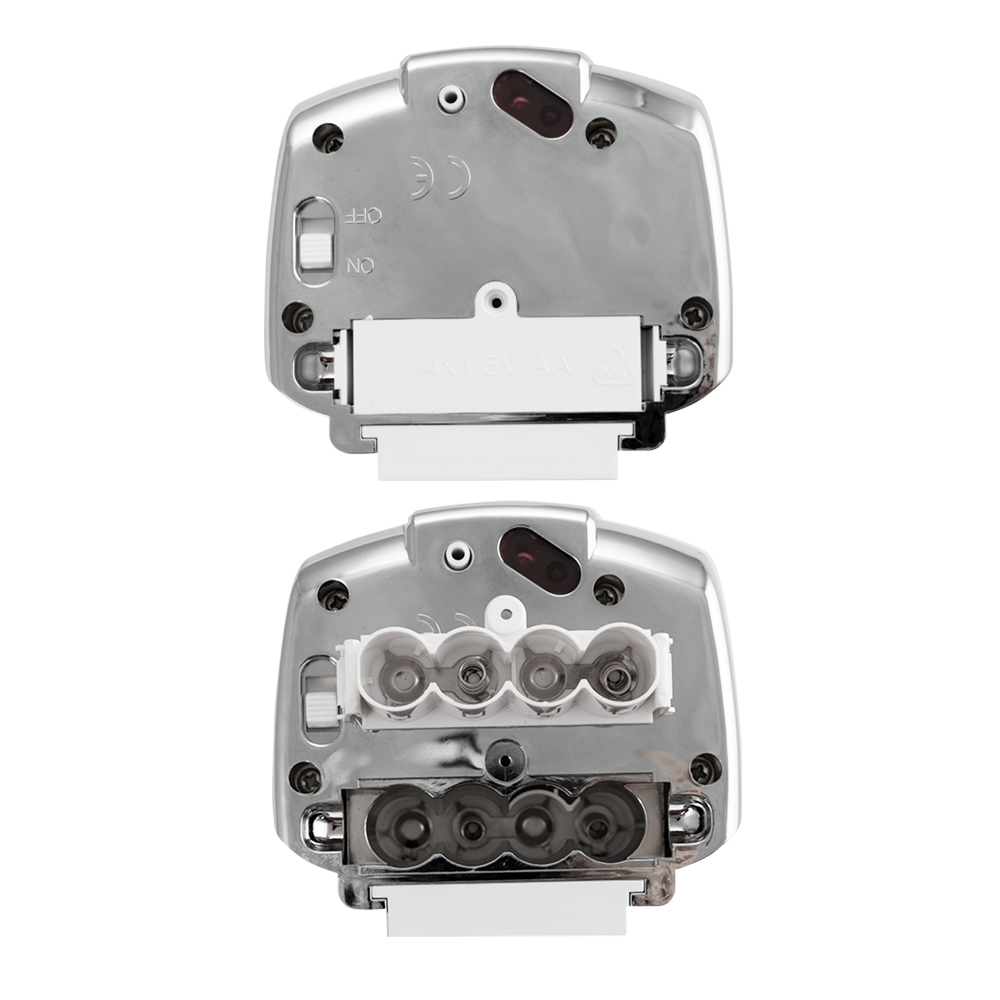 Настенный, автоматический сенсорный дозатор, предназначен для бесконтактной обработки рук жидким мылом, предназначен для установки в любых санитарно-гигиенических комнатах. Имеет ключ и пластиковый замок. Дозатор прост в эксплуатации, достаточно поднести ладонь к сенсору для получения порции средства. Автоматическая подача – предотвращает распространение микробов, вызванных прикосновением. Для удобства контроля за уровнем мыла на лицевой поверхности есть смотровое окно. Корпус диспенсера изготовлен из прочного пластика АБС хромированного цвета, который выдерживает различные механические воздействия. В резервуар емкостью 600 мл можно заливать как жидкое мыло, так и прочие средства. Разместив диспенсер на стене, достаточно время от времени проверять заполненность резервуара. Это отличное решение как для частных владений, так и для гостиниц, кафе, столовых и прочих общественных мест. Питание 1 капля-1мл, 4 АА батареи, 6V, сенсор срабатывания 0-10 см, (в комплект не входят). Габаритные размеры: высота 165 мм, шир