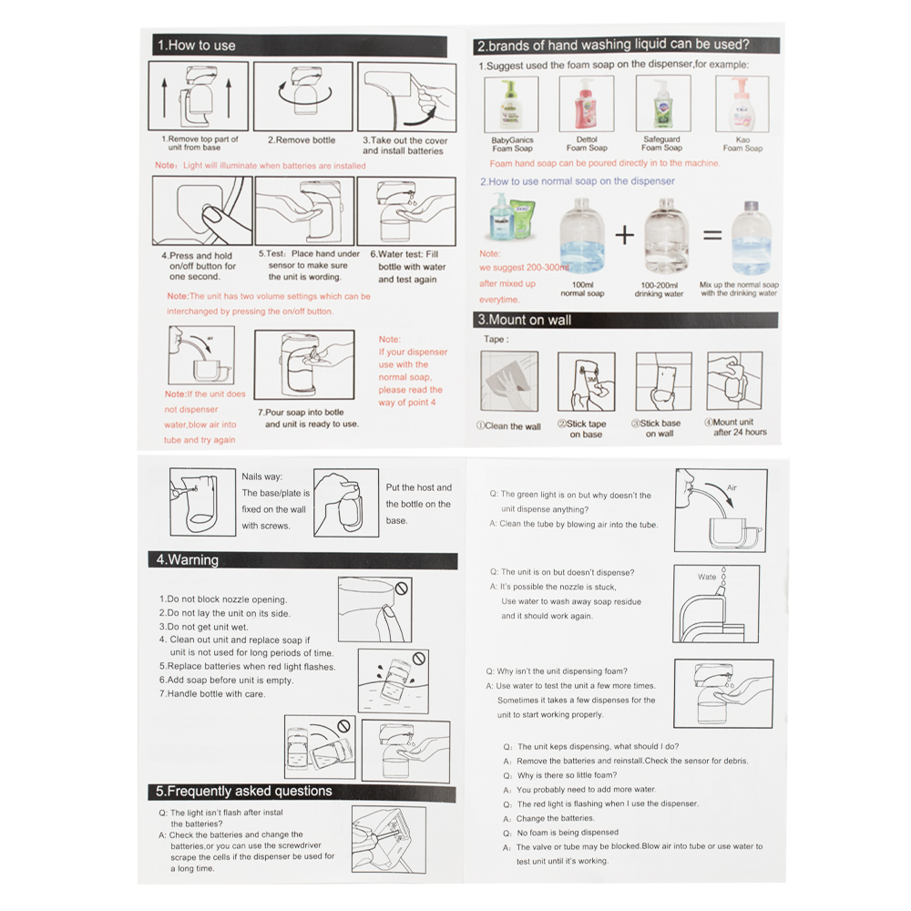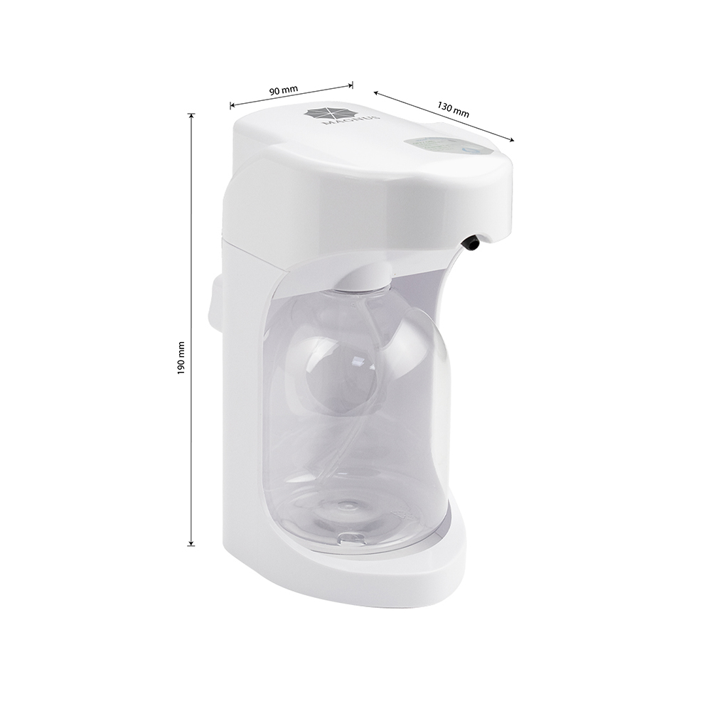 Настольный, автоматический сенсорный дозатор, предназначен для бесконтактной обработки рук жидким мылом, предназначен для установки в любых санитарно-гигиенических комнатах. Имеет ключ и пластиковый замок. Дозатор прост в эксплуатации, достаточно поднести ладонь к сенсору для получения порции средства. Автоматическая подача – предотвращает распространение микробов, вызванных прикосновением. Корпус диспенсера изготовлен из прочного пластика АБС белого цвета, который выдерживает различные механические воздействия. В резервуар емкостью 500 мл можно заливать как антисептик, так и прочие средства. Разместив диспенсер на любой поверхности, достаточно время от времени проверять заполненность резервуара. Это отличное решение как для частных владений, так и для гостиниц, кафе, столовых и прочих общественных мест. Питание от батареек 4 АА (в комплект не входят). Габаритные размеры: высота 190 мм, ширина 90 мм, глубина 130 мм. Вес - 0,500 кг, объем - 0,00280 м3.