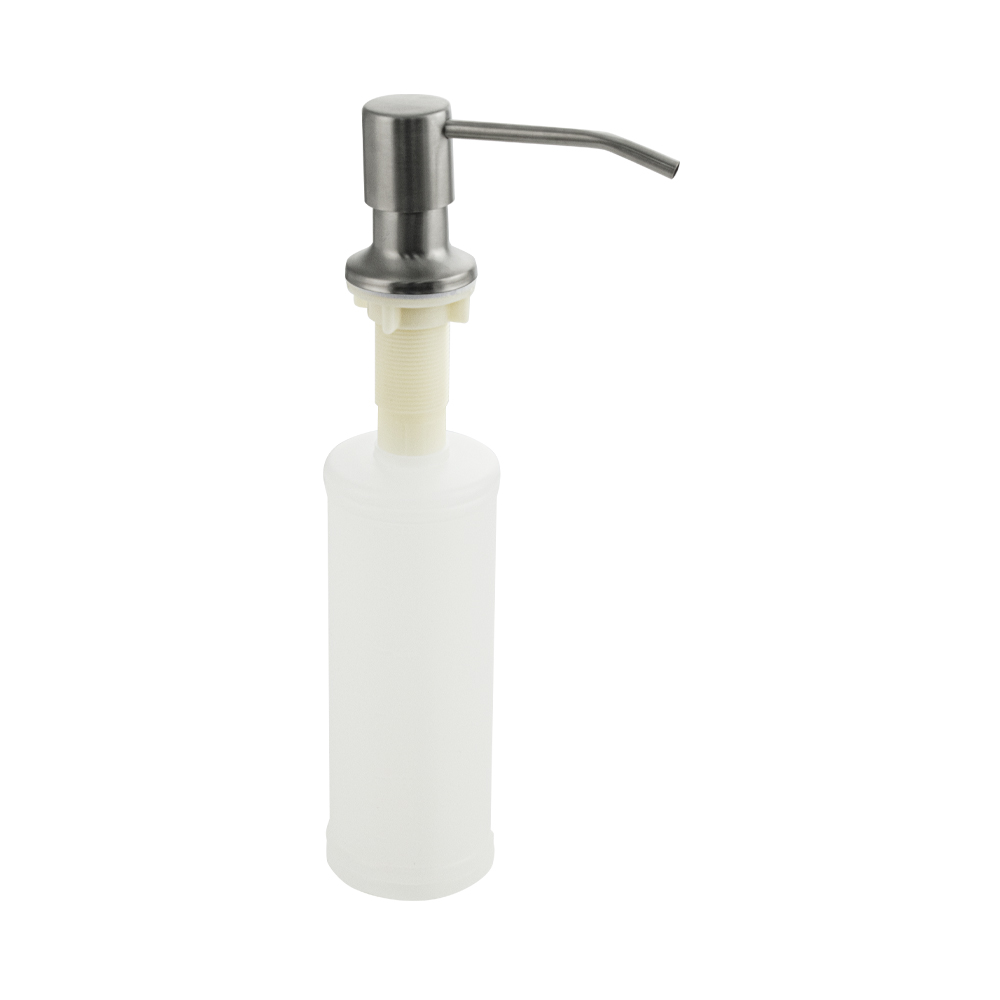 Дозатор для жидкого мыла и моющих средств, матовый хром, врезной, можно установить на кухонную мойку, если в ней предусмотрено место под встраиваемый дозатор, или на столешницу в любом удобном месте. Антивандальный корпус дозатора изготовлен из высокопрочного ABS-пластика и нержавеющей стали Требуемое отверстие для установки встраиваемого дозатора не менее 25 мм. Это очень удобный и полезный аксессуар на кухне. Наполнять его жидким моющим средством несложно, нужно просто снять верхнюю часть дозатора и залить требуемое количество жидкого мыла в колбу, емкостью 300 мл. Последовательно нажимая на верхнюю часть дозатора, Вы получаете требуемое количество моющего средства. Габаритные размеры: высота 265 мм, ширина 110 мм, диаметр посадочного седла 40 мм, длины резьбы 65 мм. Вес - 0,150 кг, объем - 0,00150 м3.