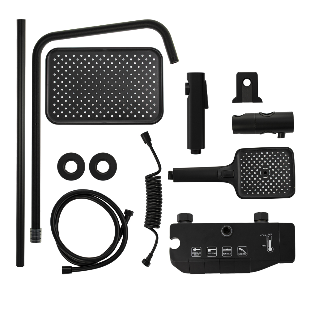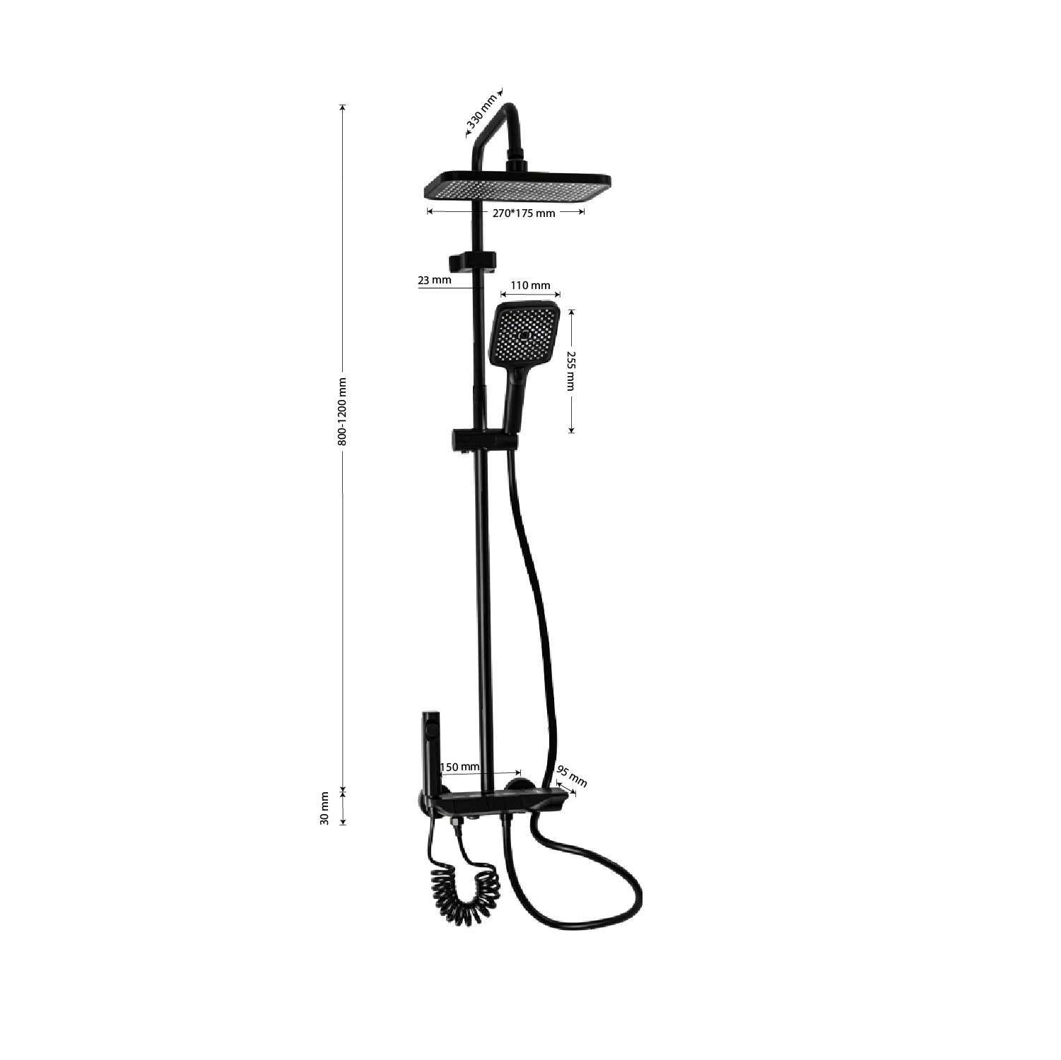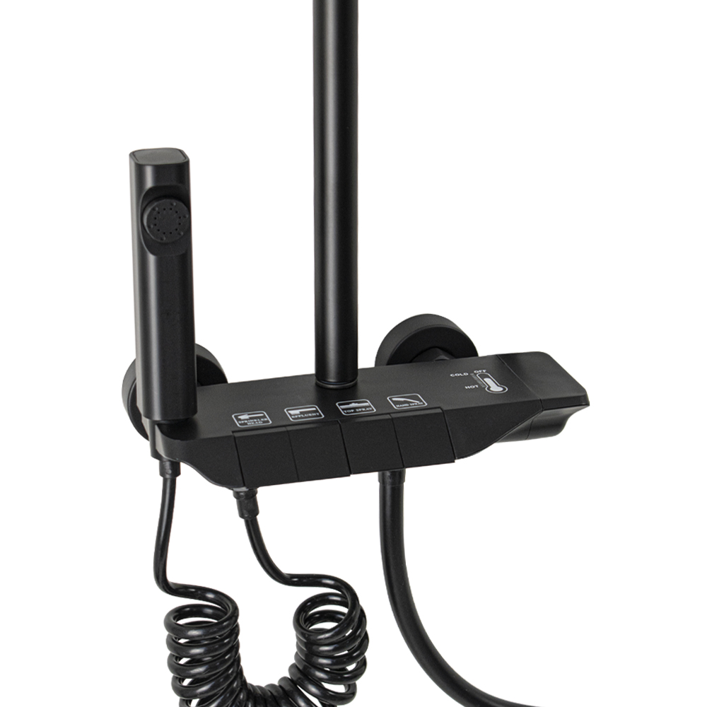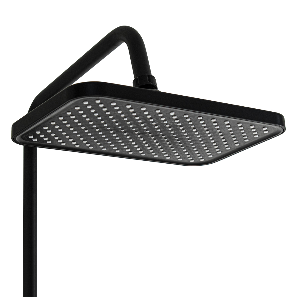 Смеситель + стойка душевая телескопическая "тропический душ" с двумя лейками и гигиеническим душем, в ванную / душевую комнату из АБС пластика. Смеситель c клавишным переключением режимов подачи воды на корпусе, с душевым шлангом и лейкой. Картридж d = 28 мм, ручка литая, аэратор для экономии воды, чашки и эксцентрики душевая, регулируемая по высоте стойка с присоединением к корпусу смесителя и дополнительным креплением к стене и большой квадратной лейкой с эффектом тропического душа. Габаритные размеры: ширина смесителя 150 мм, высота 30 мм, длина излива корпуса 95 мм, высота телескопической стойки 800 - 1200 мм, длина излива стойки 330 мм, душевая лейка 110 мм, лейка тропический душ 270*175 мм, шланг 150 см. Вес - 3.93 кг, объём - 0.03093 м3. В комплекте корпус, чашки, эксцентрики, прокладки, стойка, шланг, две лейки, крепления.
