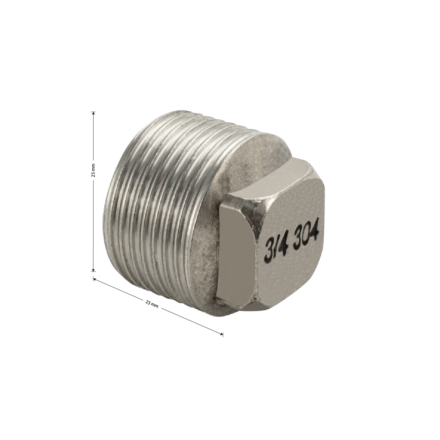 Заглушка в трубу 3/4, наружняя резьба, из нержавеющей стали марки 304. Габаритные размеры: высота 23 мм, ширина 25 мм. Вес - 0,020 кг, объем - 0,00003 м3.