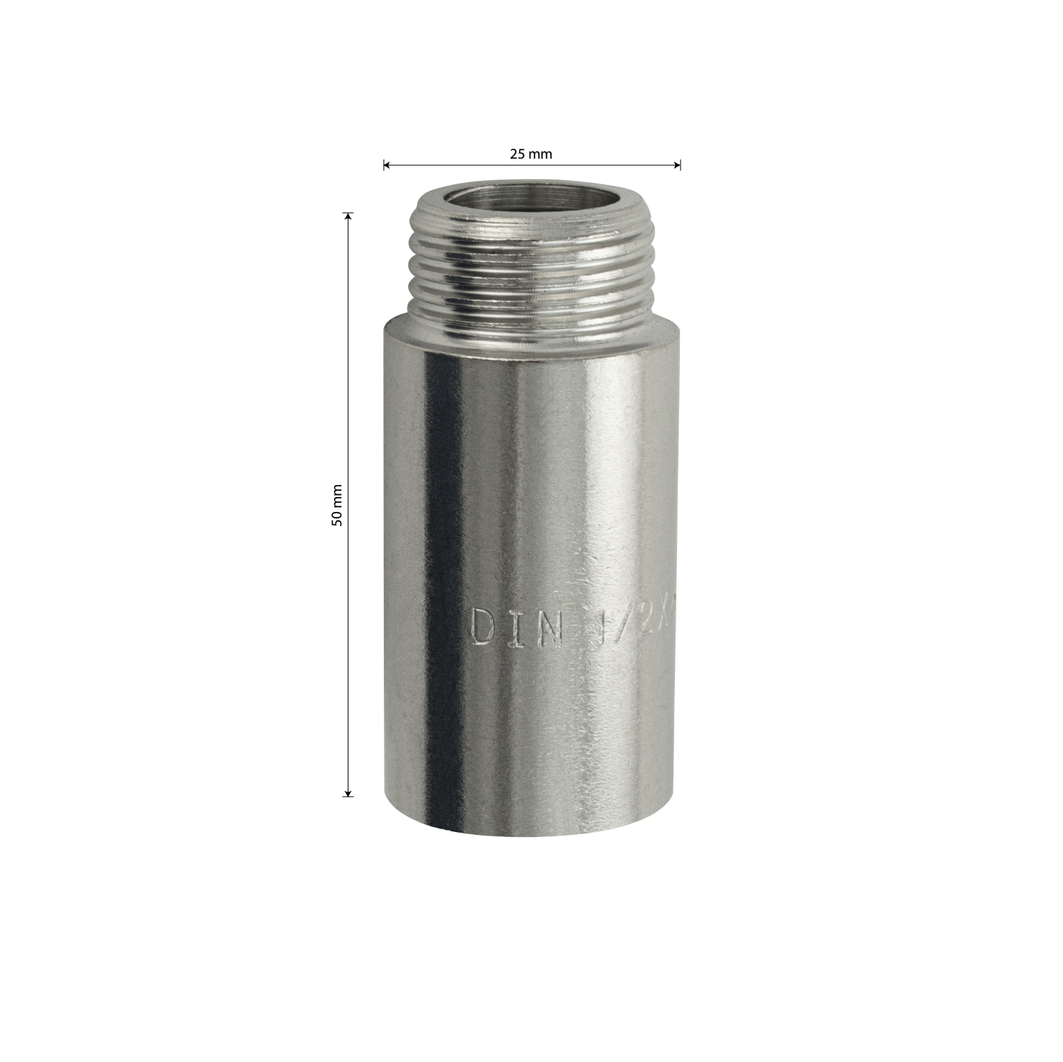 Удлинитель 40 мм, 1/2м х 1/2п, из нержавеющей стали марки 304. Габаритные размеры: высота 50 мм, ширина 25 мм. Вес - 0,020 кг, объем - 0,00006 м3.