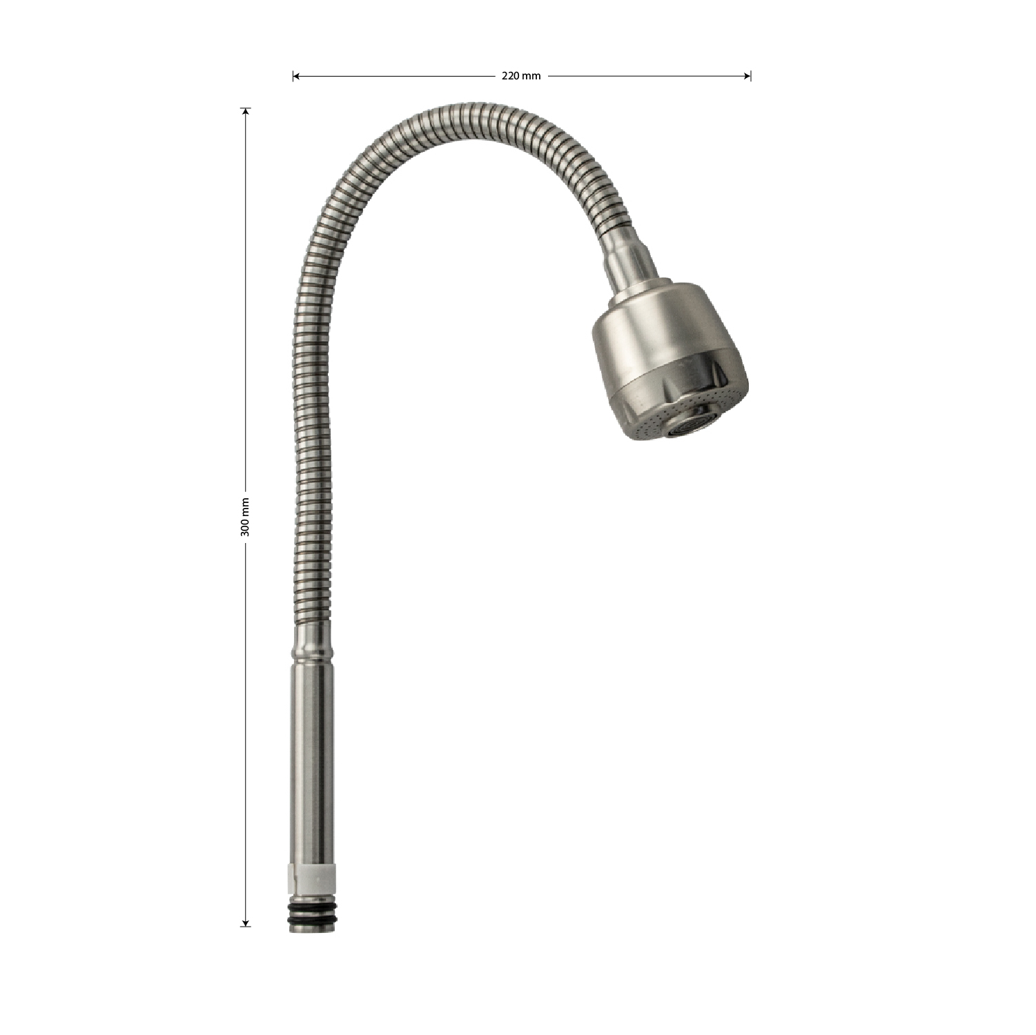 Излив к смесителю на кухню, гибкий с большим двухрежимным аэратором. Основным предназначением излива является подача воды, поступающей из смесителя. С-образная деталь имеет удобную конфигурацию и отлично подходит к смесителям на раковину и мойкам. Длинный излив обеспечит мощный поток воды. Универсальный излив для смесителя изготовлен из нержавеющей стали и имеет матовое покрытие. За счет гибкости излива, Вы без труда сможете вымыть объемную посуду, фрукты, дотянуться до труднодоступных мест и любого содержимого мойки Идеально впишется в любой дизайн и может использоваться повсеместно. Устройство оснащено аэратором, проходя через него, вода насыщается множеством пузырьков воздуха, позволяя формировать струю в мягкий и ровный поток, а также экономить расход воды. Габаритные размеры: глубина 220 мм, высота 300 мм. Вес - 0,350 кг, объём - 0,0011 м3.
