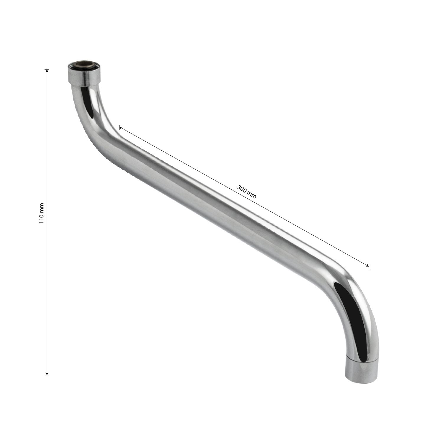 Излив к смесителю в ванную. Основным предназначением излива является подача воды, поступающей из смесителя. S-образная деталь имеет удобную конфигурацию и отлично подходит для ванной комнаты. Длинный круглый излив обеспечит мощный поток воды и быстрое наполнение ванны. Универсальный излив для смесителя изготовлен из нержавеющей стали и имеет хромированное покрытие. Идеально впишется в любой дизайн и может использоваться повсеместно. Устройство оснащено аэратором, проходя через него, вода насыщается множеством пузырьков воздуха, позволяя формировать струю в мягкий и ровный поток, а также экономить расход воды. Габаритные размеры: длина 300 мм, высота 110 мм, диаметр 25 мм. Вес - 0,150 кг, объём - 0,00012 м3.