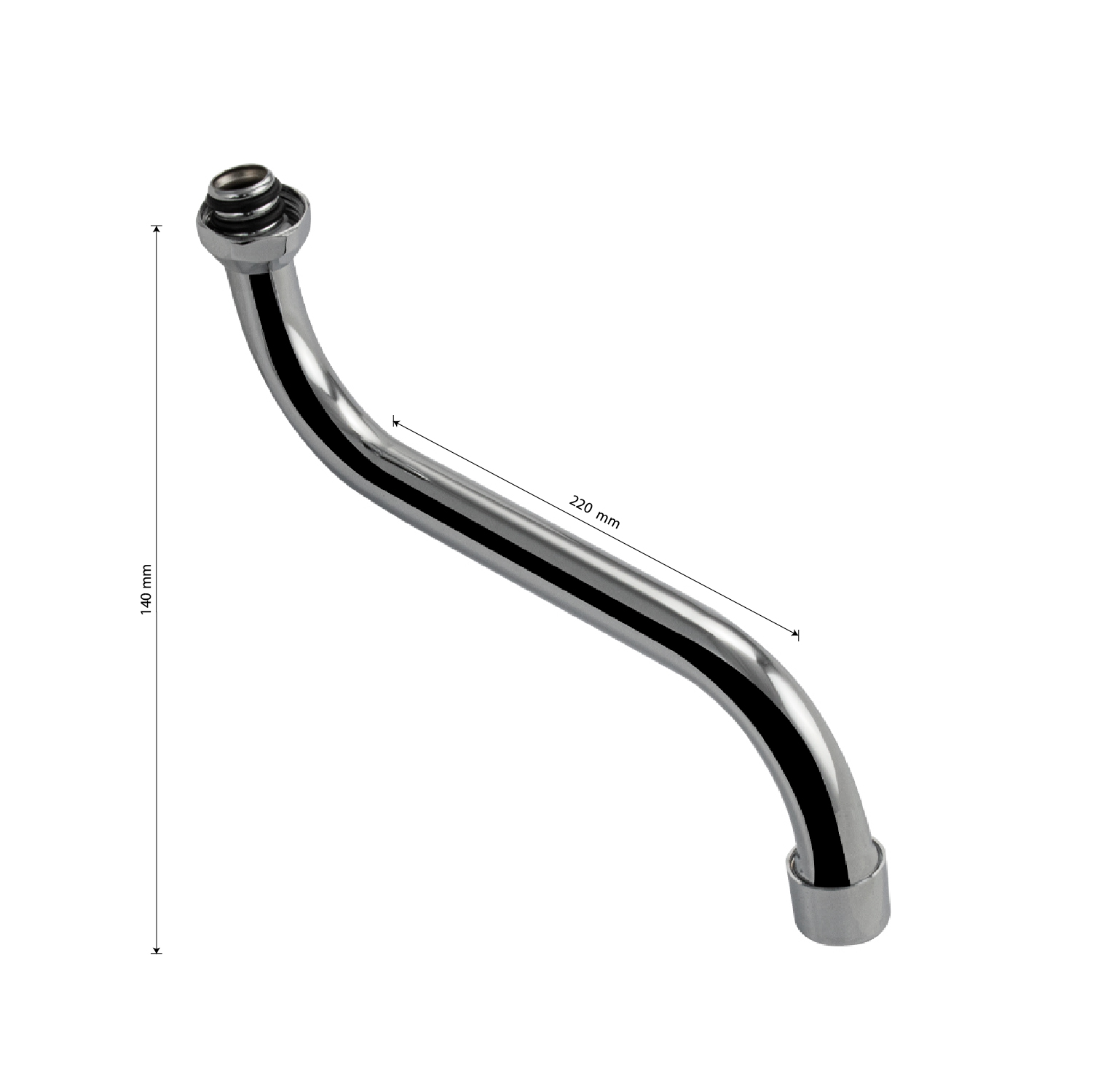 Излив к смесителю в ванную. Основным предназначением излива является подача воды, поступающей из смесителя. S-образная деталь имеет удобную конфигурацию и отлично подходит для ванной комнаты. Длинный круглый излив обеспечит мощный поток воды и быстрое наполнение ванны. Универсальный излив для смесителя изготовлен из нержавеющей стали и имеет хромированное покрытие. Идеально впишется в любой дизайн и может использоваться повсеместно. Устройство оснащено аэратором, проходя через него, вода насыщается множеством пузырьков воздуха, позволяя формировать струю в мягкий и ровный поток, а также экономить расход воды. Габаритные размеры: длина 220 мм, высота 140 мм, диаметр 20 мм. Вес - 0,100 кг, объём - 0,00010 м3.