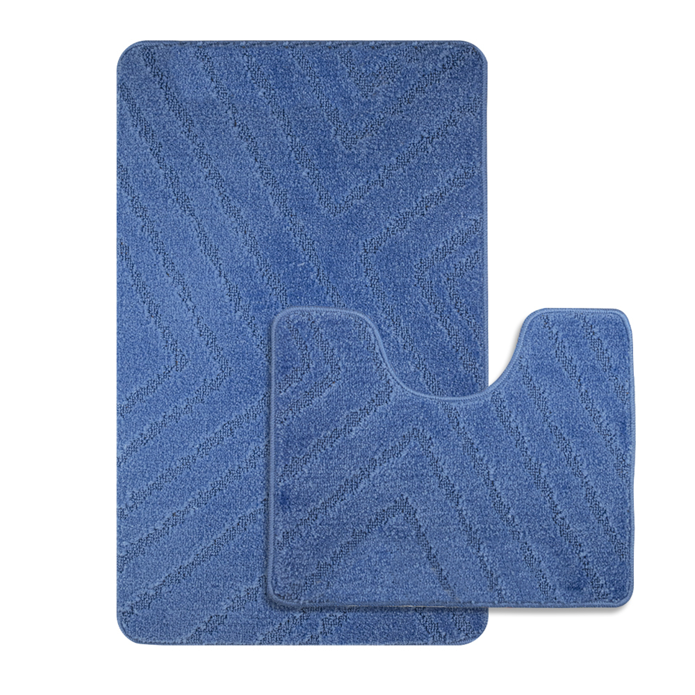 Коврик в ванную CLASSIC UNI ПОЛОСКИ, двойной СИНИЙ, 55х90 + 45х55 см, 100% полиэстер