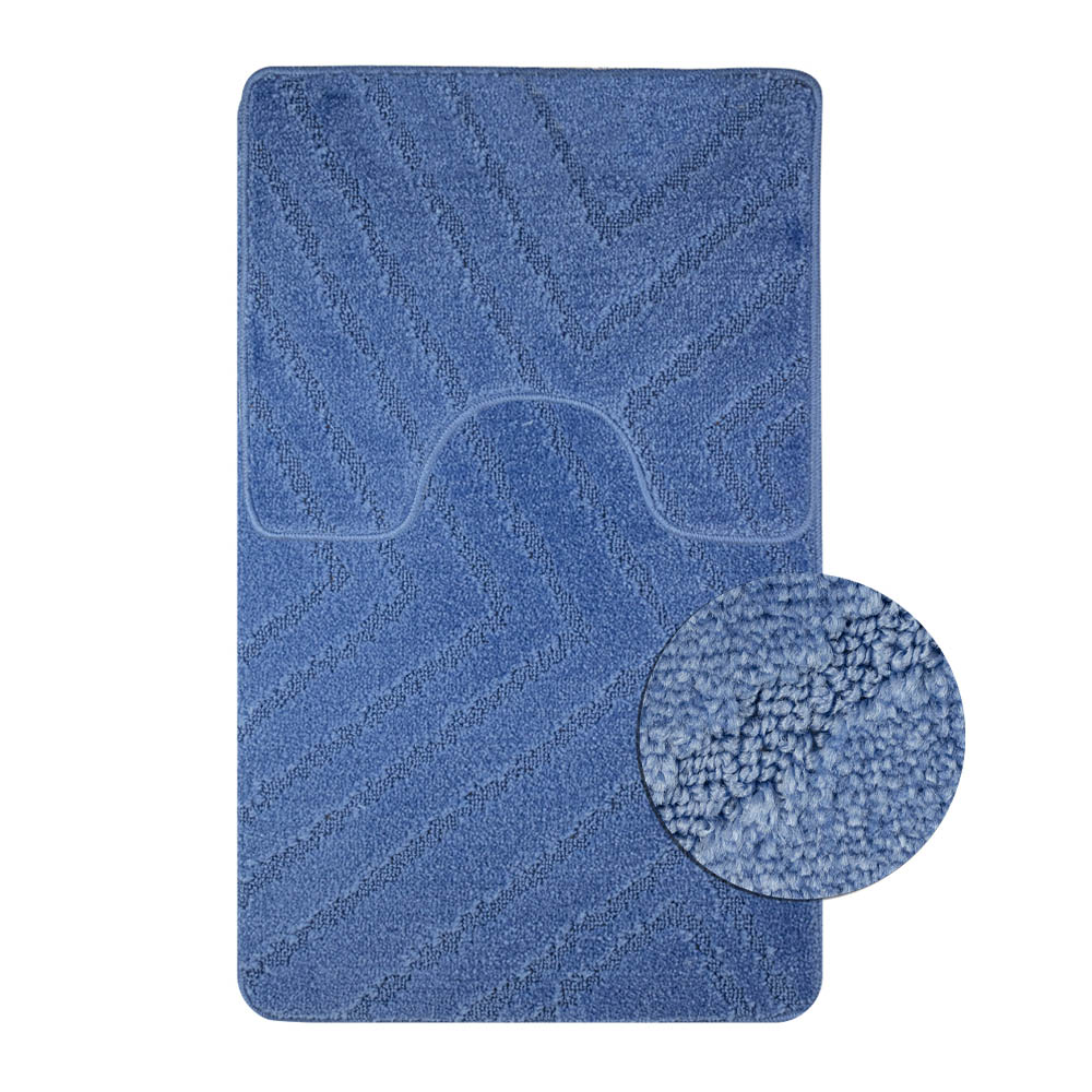 Коврик в ванную КЛАССИК УНИ ПОЛОСКИ, двойной СИНИЙ, 55х90 + 45х55 см, 100% полиэстер