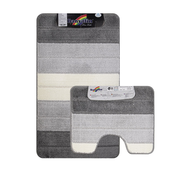 Коврик в ванную SILVER двойной, СЕРЫЙ, полосы, 60х100 + 50х60 см, 100% полиэстер.