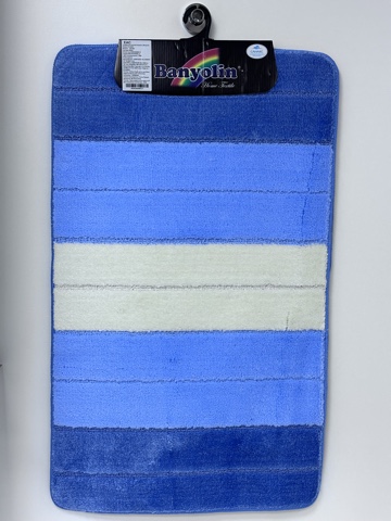 Коврик в ванную SILVER двойной, СИНИЙ, полосы, 60х100 + 50х60 см, 100% полиэстер.