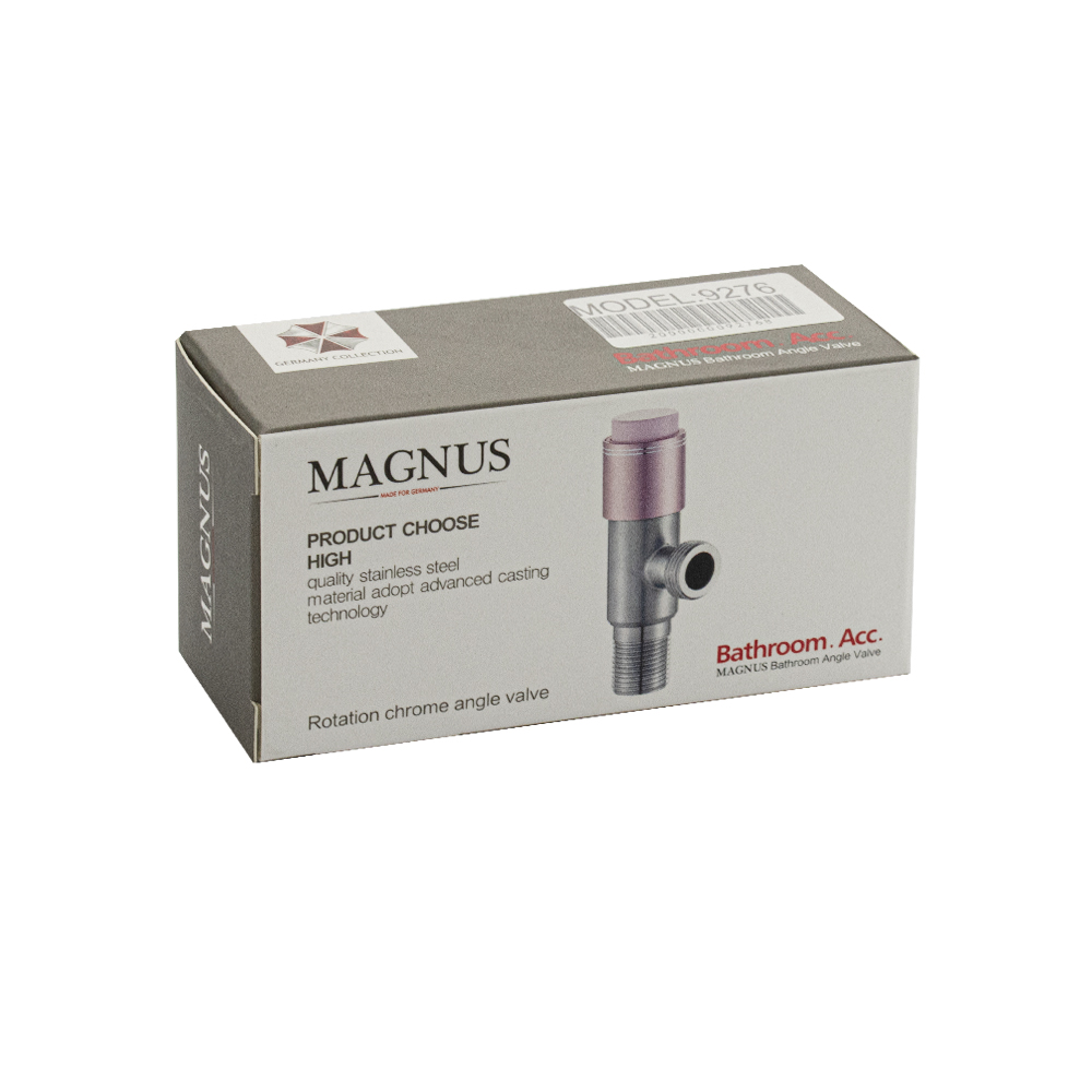 Кран угловой с фильтром, 1/2"х1/2", матовый, с кнопочным включением розовая ручка, с отражателем, из нержавеющей стали марки 304