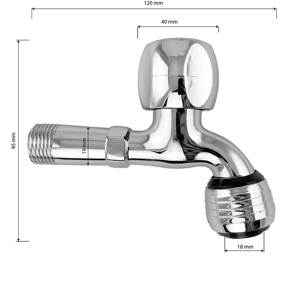 Кран водоразборный 1/2н хромированный, с экономичным аэратором, металлокерамика, круглая ручка. Габаритные размеры: длина 100 мм, высота 95 мм. Вес - 0,160 кг, объём - 0,00048 м3