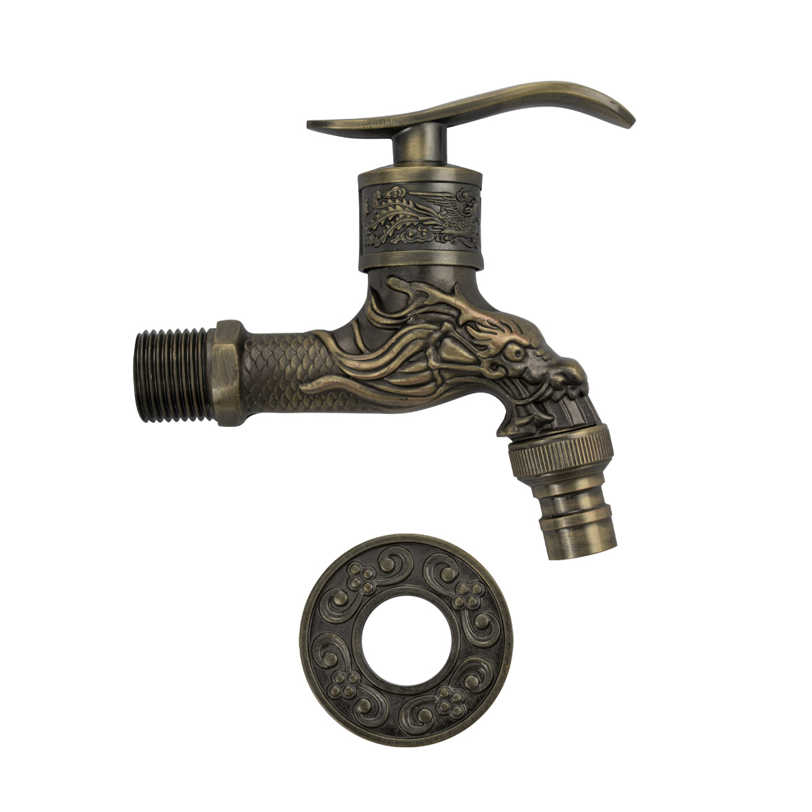 Кран водоразборный на 1/2", от стены 10 см, наружняя резьба, латунный корпус под бронзу, со штуцером для подключения поливочного шланга, металлокерамика, ручка флажок поворот на 90˚. Такая модель может использоваться на домашней кухне, на даче, в медицинских учреждениях и общественных местах. Габаритные размеры: высота 150 мм, длина 95 мм, диаметр посадочного седла 50 мм. Вес - 0,300 кг, объём - 0,00062 м3.