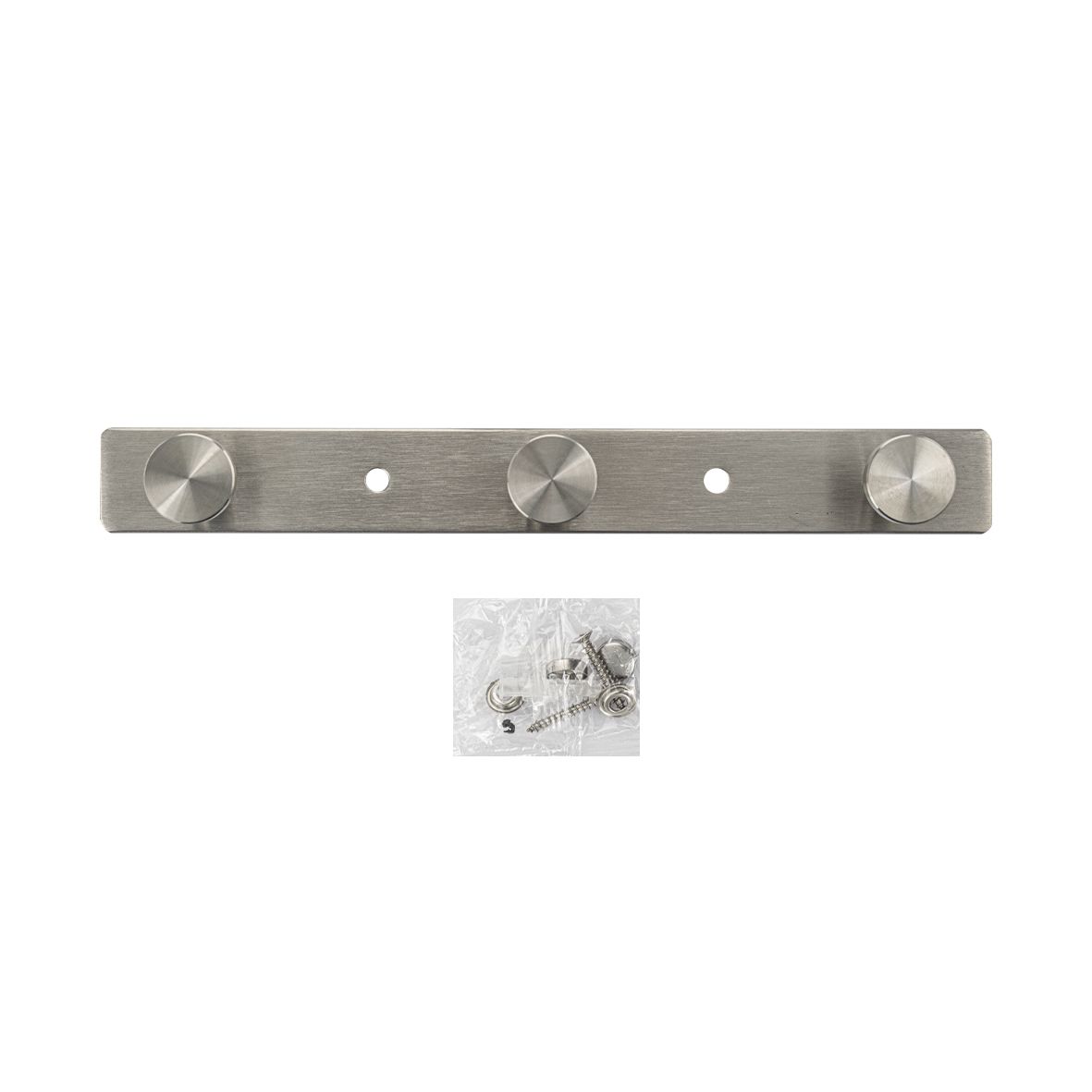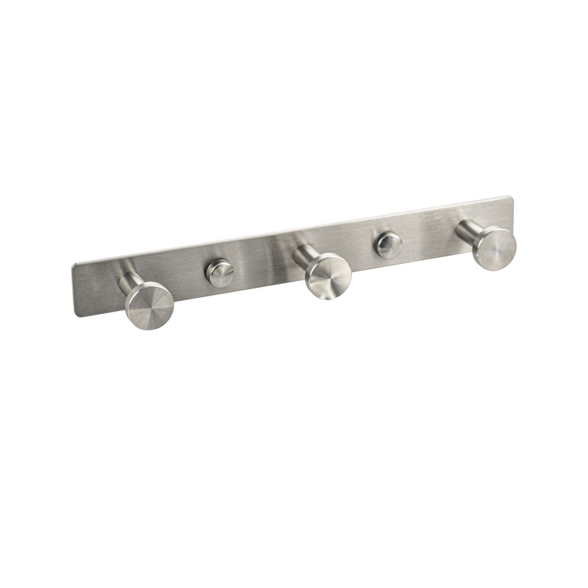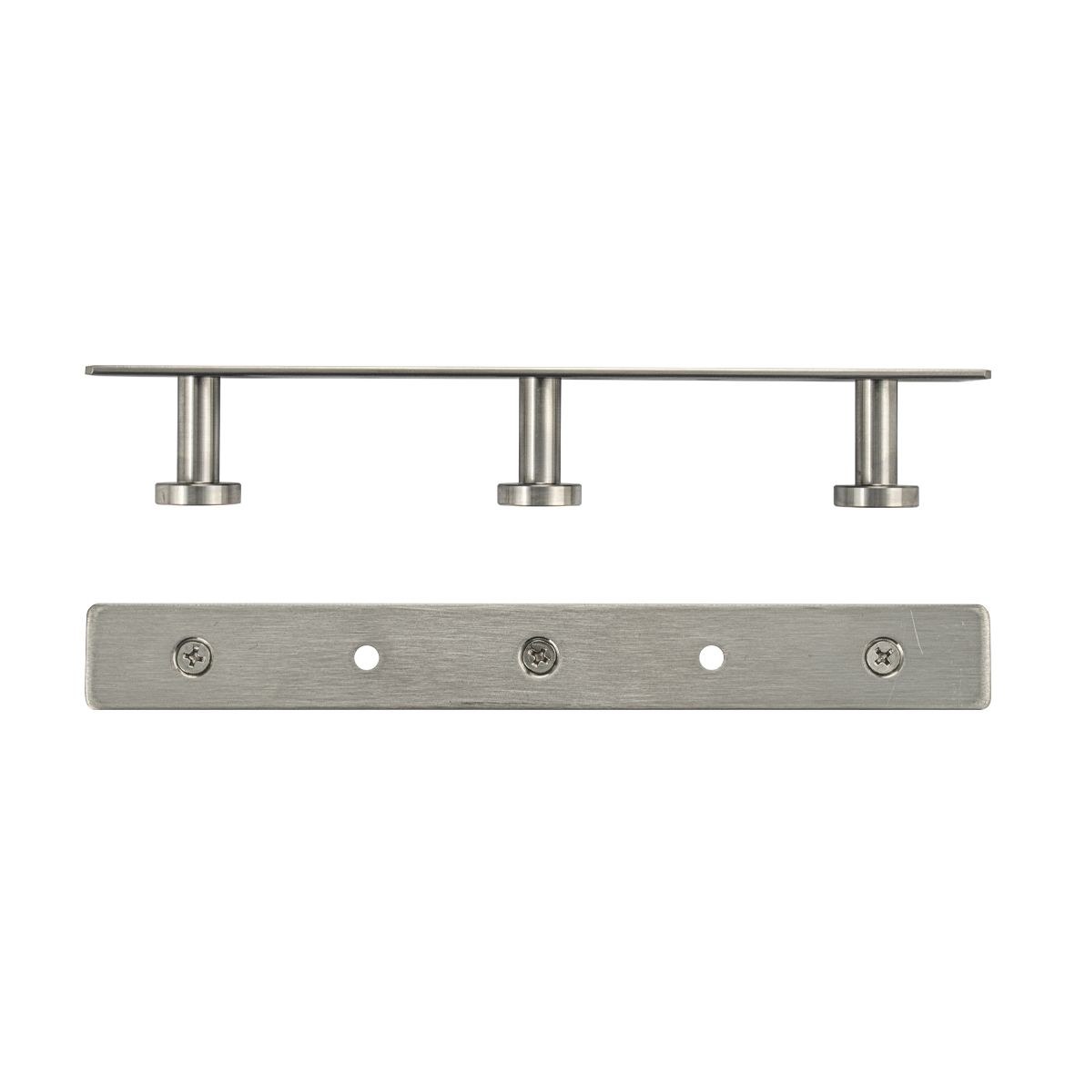 Вешалка - держатель для принадлежностей, металлический, матовый, с тремя крючками - столбики. Изготовлен из прочной нержавеющей стали марки SUS 304 с матовым покрытием, которое придает безупречный стильный вид и долговечность. Матовое покрытие очень стойко переносит истирания и обеспечивает долгую службу изделия. На держателе с легкостью можно размещать вещи для сушки или вешать, как полотенца, так и одежду перед походом в душ. Идеально подойдет не только для ванной, но и для кухни, а также для дачи или гаража - при необходимости на держатель можно вешать любые предметы. Изделие крепится к стене с помощью дюбелей и саморезов (входят в комплект). Габаритные размеры: длина 210 мм, высота 25 мм, глубина 33 мм. Вес - 0.20 кг, объём - 0.0003 м3.