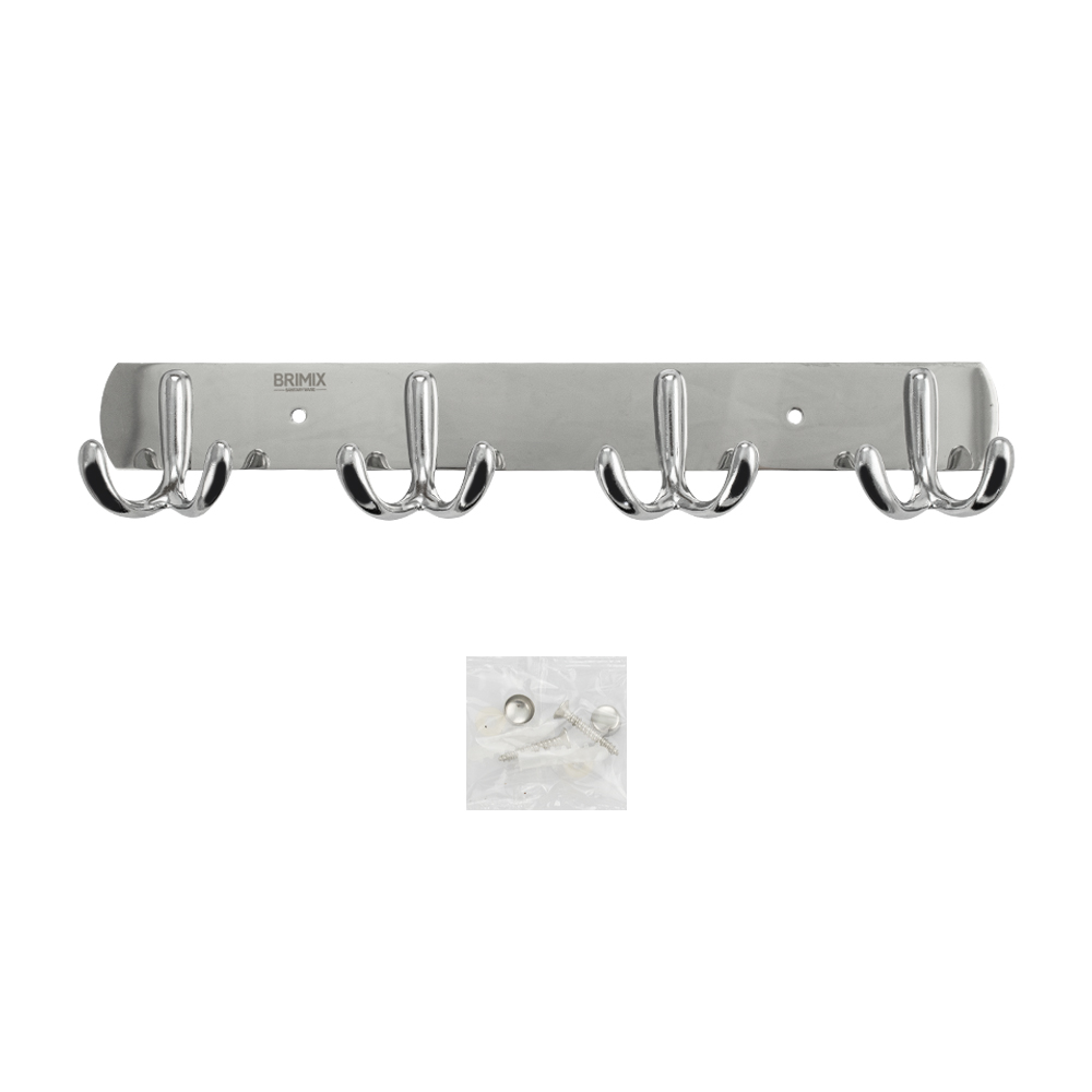 Вешалка - держатель для принадлежностей, металлический, хромированный, с четырьмя двойными крючками. Изготовлен из прочной нержавеющей стали марки SUS 304 с хромированным покрытием, которое придает безупречный стильный вид и долговечность. Хромированное покрытие очень стойко переносит истирания и обеспечивает зеркальный блеск изделия. На держателе с легкостью можно размещать вещи для сушки или вешать, как полотенца, так и одежду перед походом в душ. Идеально подойдет не только для ванной, но и для кухни, а также для дачи или гаража - при необходимости на держатель можно вешать любые предметы. Изделие крепится к стене с помощью дюбелей и саморезов (входят в комплект). Габаритные размеры: длина 290 мм, высота 55 мм, глубина 35 мм. Вес - 0,300 кг, объём - 0,00050 м3.