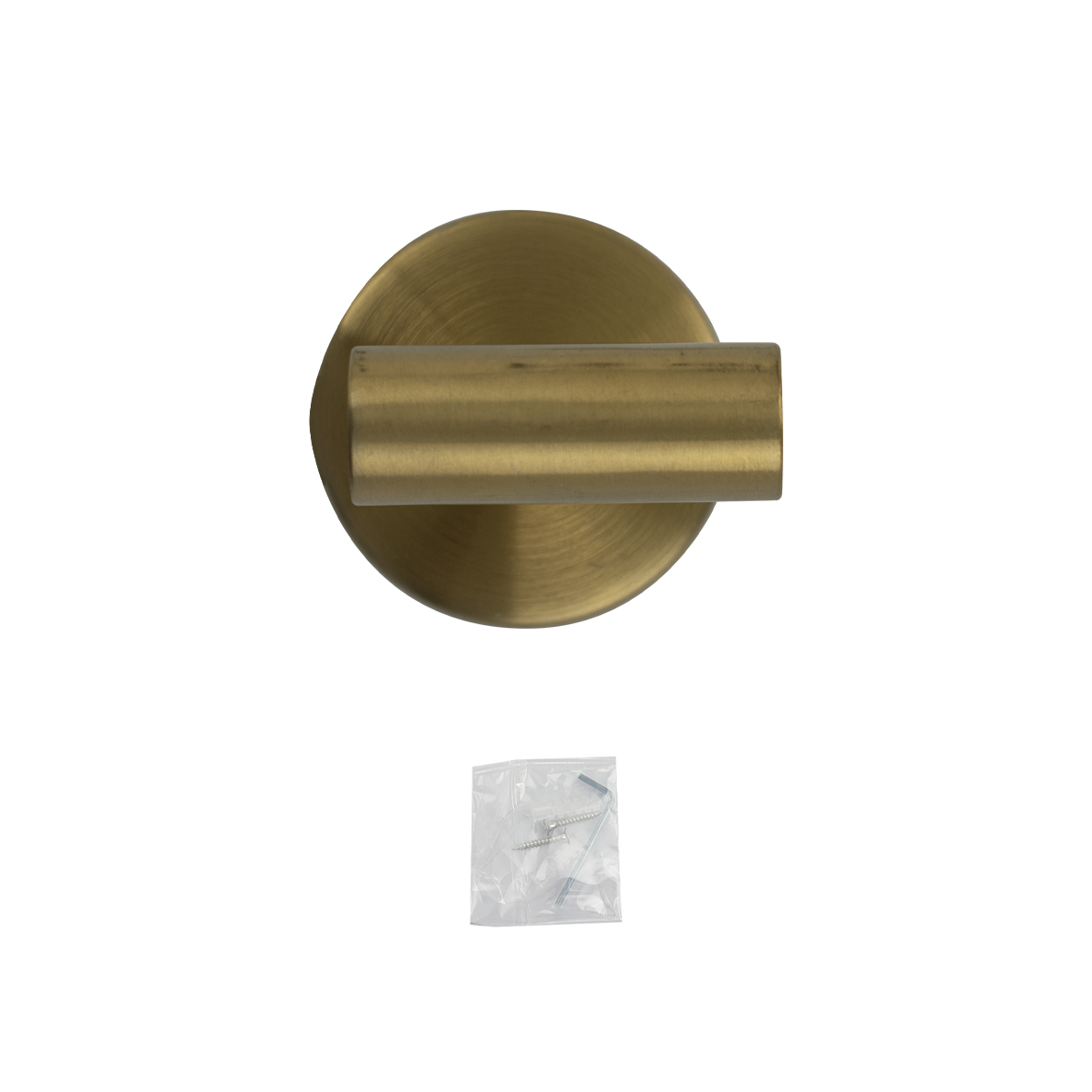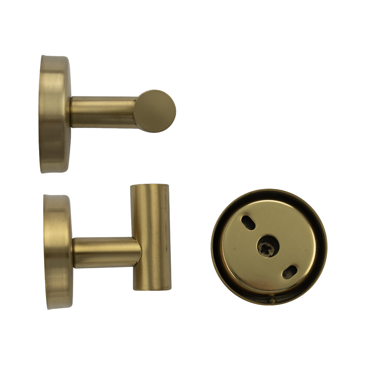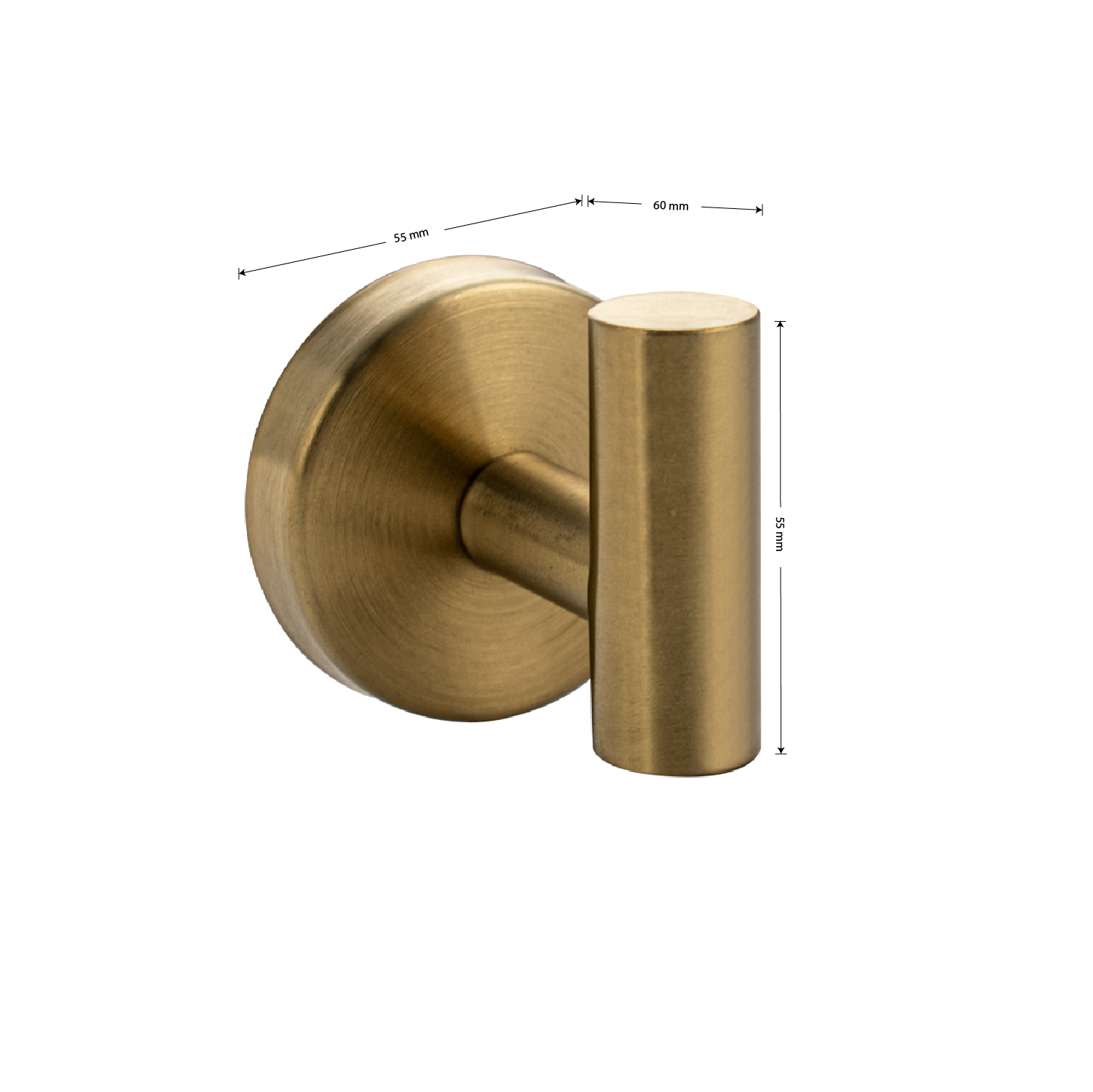 Крючок для принадлежностей металлический, матовый, одинарный. Изготовлен из прочной нержавеющей стали марки SUS 304 с матовым покрытием золотого цвета , которое придает безупречный стильный вид и долговечность. На держателе с легкостью можно размещать вещи для сушки или вешать, как полотенца, так и одежду перед походом в душ. Идеально подойдет не только для ванной, но и для кухни, а также для дачи или гаража - при необходимости на держатель можно вешать любые предметы. Изделие крепится к стене с помощью дюбелей и саморезов (входят в комплект). Габаритные размеры: ширина 55 мм, высота 55 мм, глубина 60 мм. Вес - 0.1 кг, объём - 0.00043 м3.