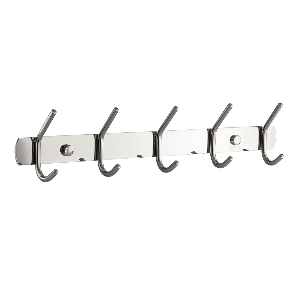 Вешалка - держатель для принадлежностей, металлический, хромированный, с пятью двойными крючками. Изготовлен из прочной нержавеющей стали марки SUS 304 с хромированным покрытием, которое придает безупречный стильный вид и долговечность. Хромированное покрытие очень стойко переносит истирания и обеспечивает зеркальный блеск изделия. На держателе с легкостью можно размещать вещи для сушки или вешать, как полотенца, так и одежду перед походом в душ. Идеально подойдет не только для ванной, но и для кухни, а также для дачи или гаража - при необходимости на держатель можно вешать любые предметы. Изделие крепится к стене с помощью дюбелей и саморезов (входят в комплект). Габаритные размеры: длина 365 мм, высота 75 мм, глубина 35 мм. Вес - 0,272 кг, объём - 0,001 м3.