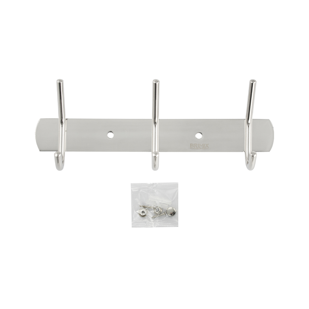 Вешалка - держатель для принадлежностей, металлический, хромированный, с тремя двойными крючками. Изготовлен из прочной нержавеющей стали марки SUS 304 с хромированным покрытием, которое придает безупречный стильный вид и долговечность. Хромированное покрытие очень стойко переносит истирания и обеспечивает зеркальный блеск изделия. На держателе с легкостью можно размещать вещи для сушки или вешать, как полотенца, так и одежду перед походом в душ. Идеально подойдет не только для ванной, но и для кухни, а также для дачи или гаража - при необходимости на держатель можно вешать любые предметы. Изделие крепится к стене с помощью дюбелей и саморезов (входят в комплект). Габаритные размеры: длина 205 мм, высота 75 мм, глубина 35 мм. Вес - 0,160 кг, объём - 0,00059 м3.