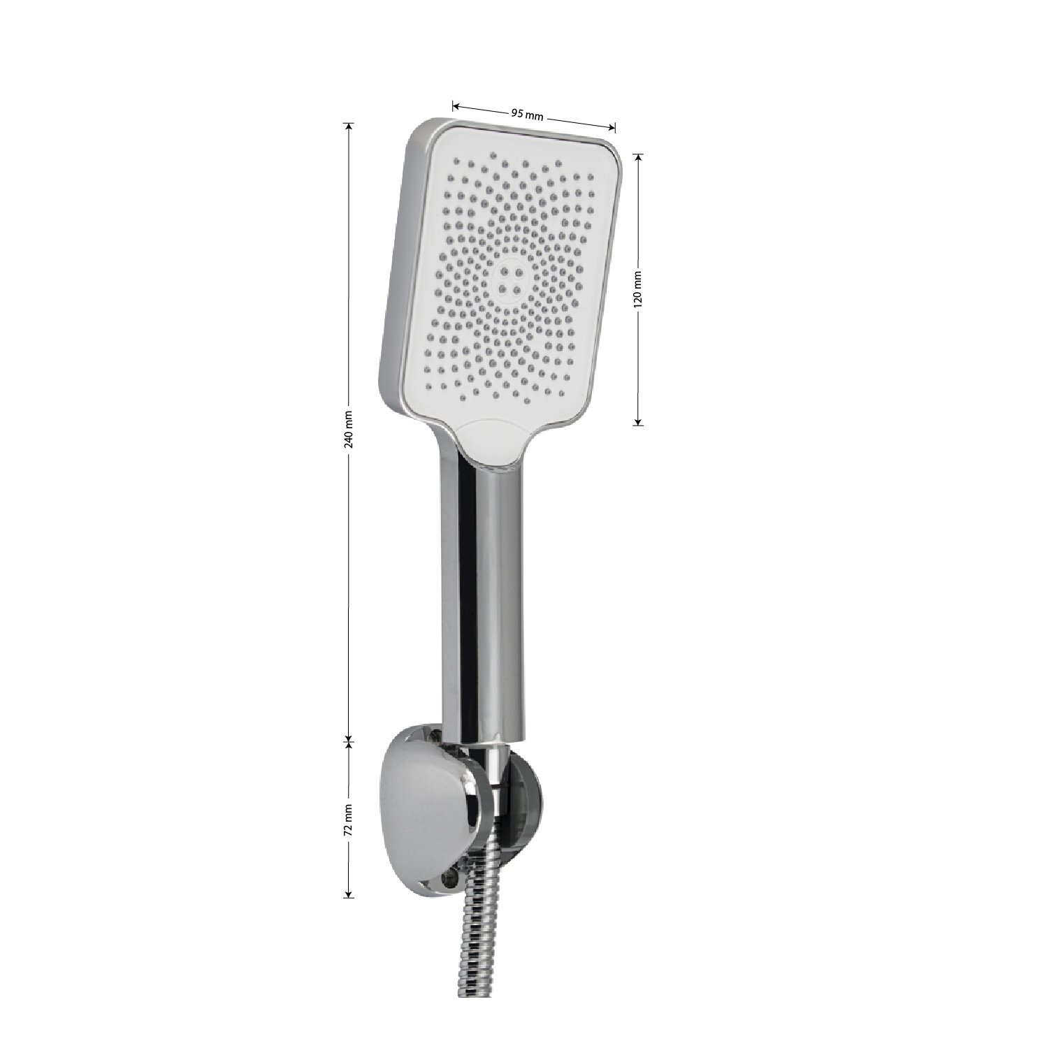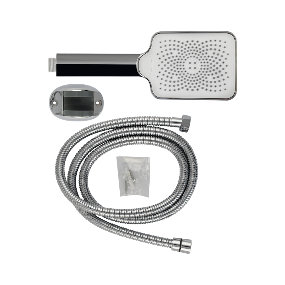 Набор душевой от торговой марки GFmark, универсальный, хромированный, подходит к любым душевым системам и смесителям. В комплекте: лейка душевая, шланг, кронштейн,комплект крепления кронштейна. Габаритные размеры: высота 240 мм, ширина лейки 95 мм, шланг 150 см. Вес - 0.47 кг, объём - 0.0032 м3.