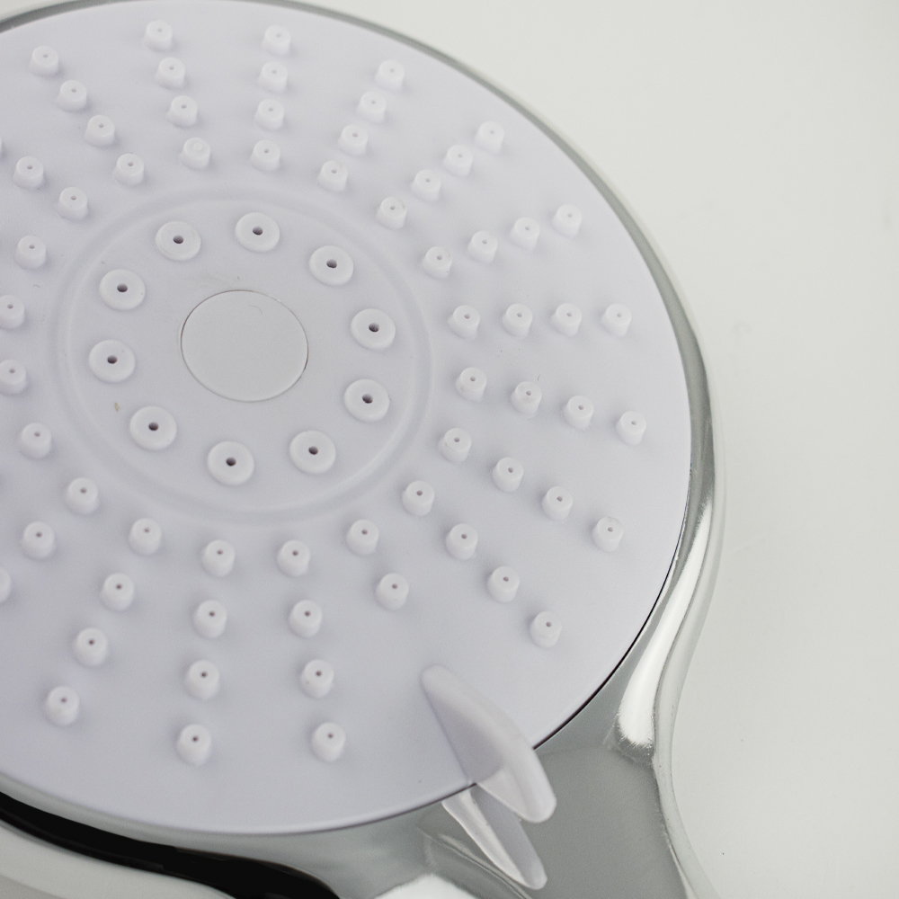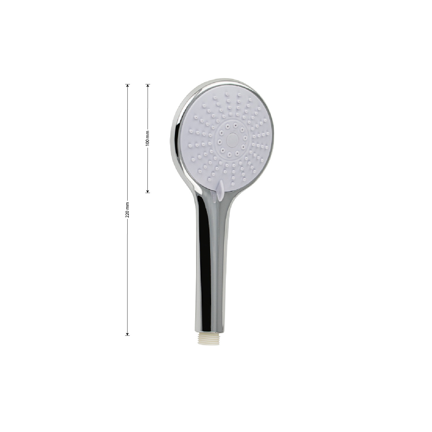 Душевая лейка отличается современным технологичным дизайном, высокой надежностью, долговечностью. Она изготовлена из влагостойкого пластика АБС и имеет декоративное покрытие цвета «хром», придающее устройству привлекательный вид и предохраняющее от агрессивного воздействия окружающей среды. Корпус отличается небольшим весом, что исключает повреждение напольной плитки или эмали ванны при случайном падении. Работает в трех режимах с регулируемой интенсивностью: дождевая, обычная, массажная струи. Ухаживать за душевой лейкой легко. Глянцевую поверхность достаточно протереть мягкой салфеткой, она в течение долгого времени не потеряет своего блеска. Система помогает мгновенно очистить силиконовые форсунки душевой лейки от известкового налета и загрязнения. Габаритные размеры: высота 220 мм, диаметр лейки 100 мм. Вес - 0,17 кг, объём - 0,00278 м3.