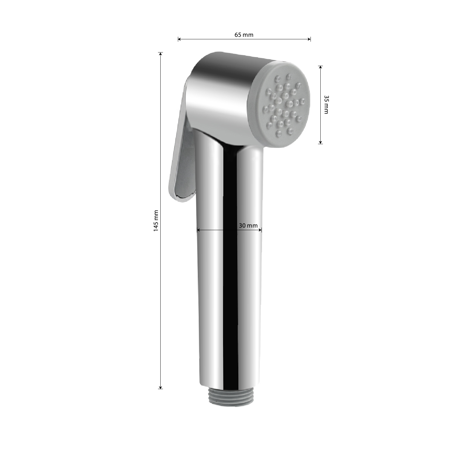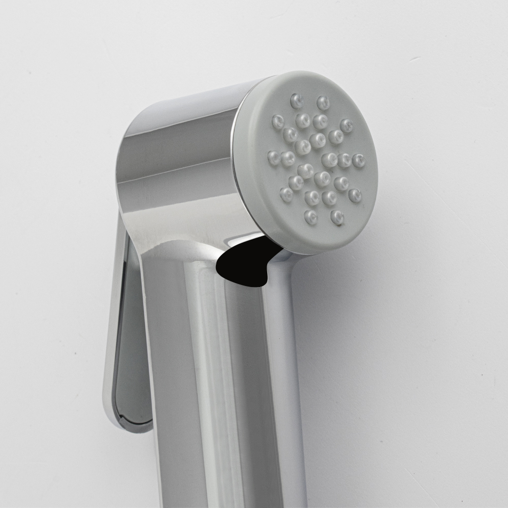 Гигиенический душ от торговой марки GFmark – функциональное устройство для тех, кто ценит комфорт в санузле. Ручная лейка с нажимной кнопкой управления легко подсоединяется к любому шлангу и функционирует даже при минимальном давлении в системе водоснабжения. Модель произведена из прочного пластика с хромированной поверхностью, привлекающей внимание своим зеркальным блеском. Система SpeedClean не допускает образования известковых отложений и существенно упрощает уход. Габаритные размеры: высота 145 мм, диаметр лейки 35 мм, диаметр корпуса 30 мм, ширина 65 мм. Вес - 0,150 кг, объём - 0,00027 м3.